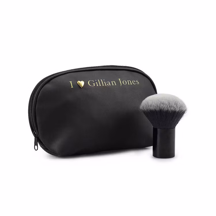 En riktigt bra sminkborste av äkta naturhår samt en snygg sminkväska i skinnimitation.