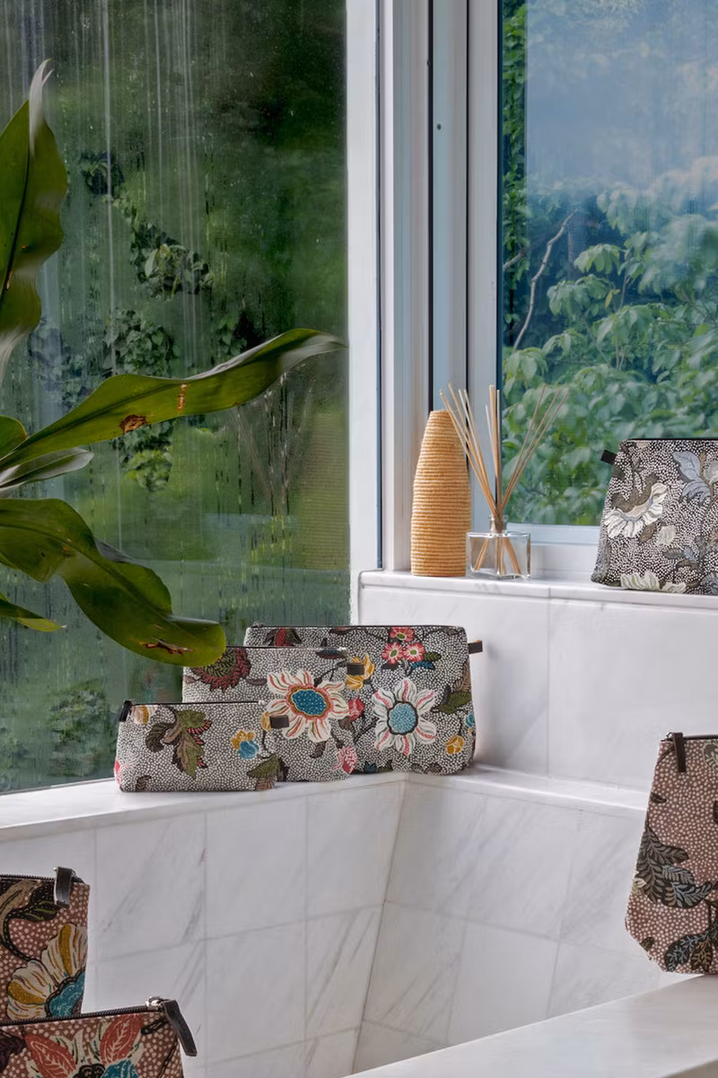 Varje necessär har ett lite innerfack som stängs med dragkedja. Tyget är avtorkningsbart.