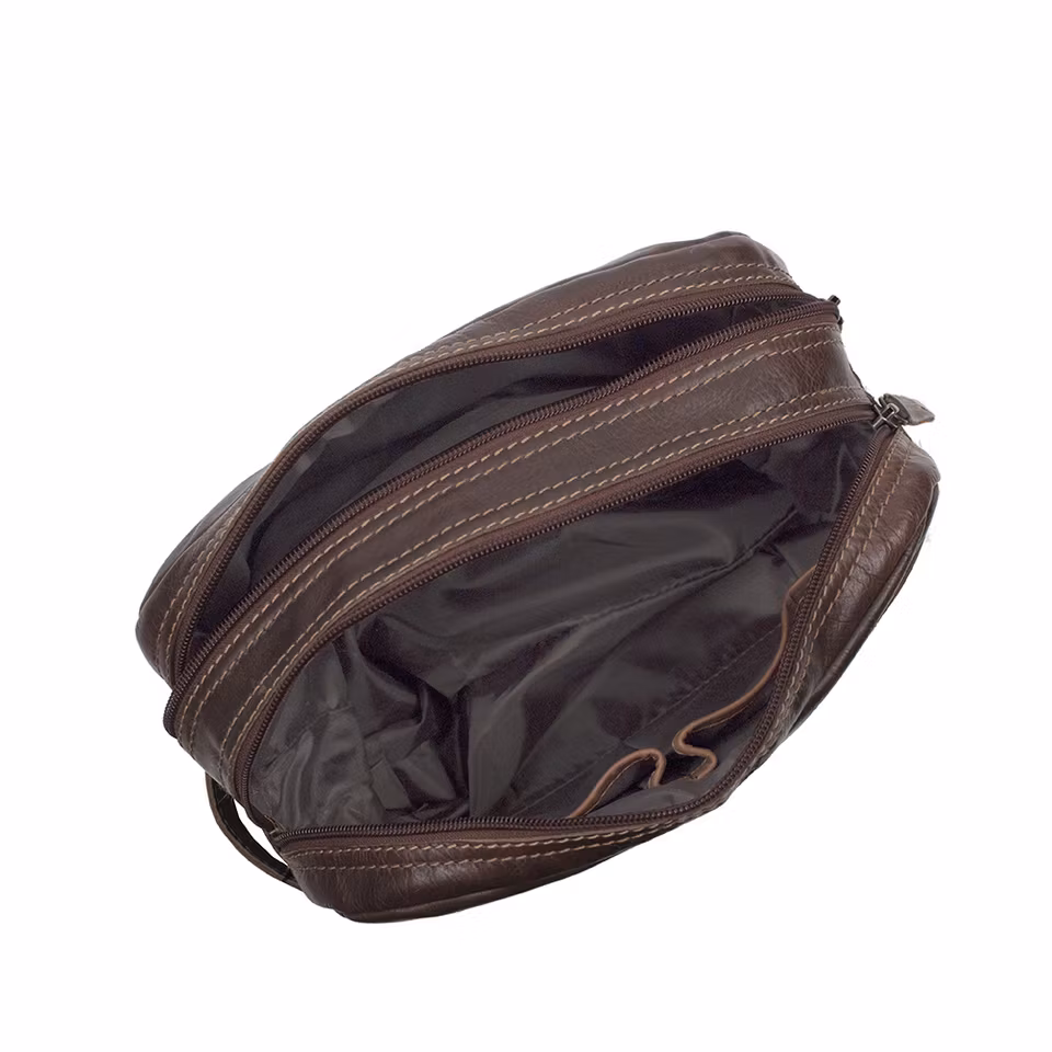Exklusiv necessär i skinn som passar lika bra till män som till kvinnor. Necessären är uppdelad i 2 separata fack.