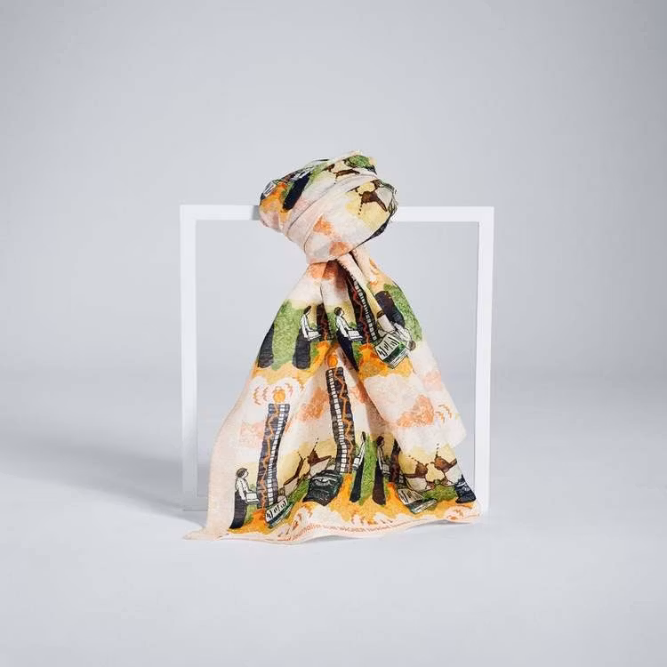 Bär din sjal med stolthet och sprid historian. Använd sjalen runt halsen, över axlarna, i håret, på väskan, som bälte. Det kommer att bli din favorit accessoar.