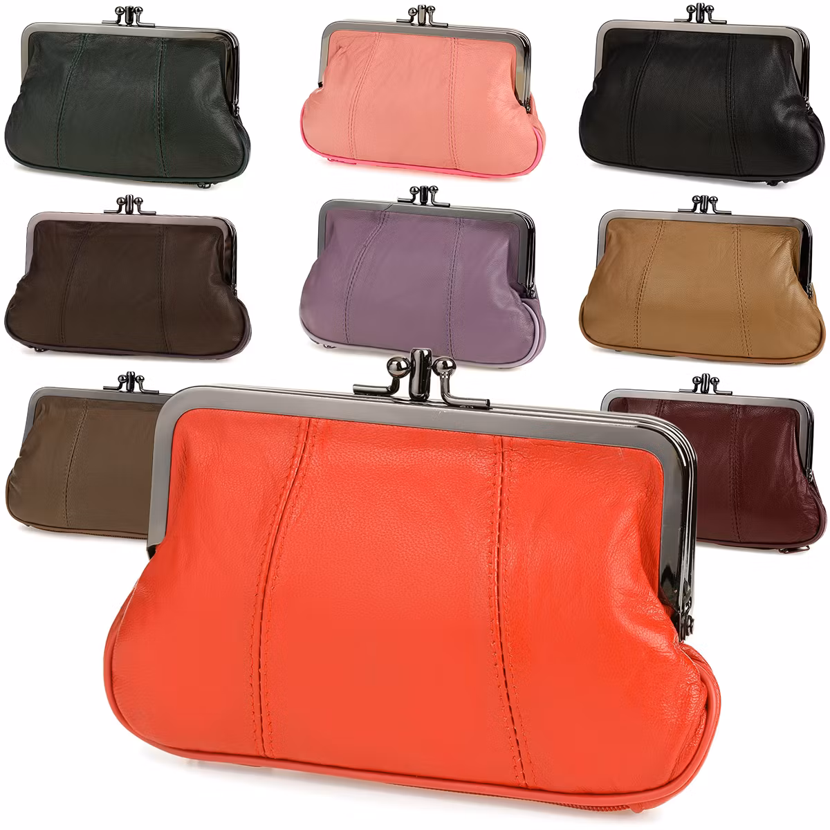 Portmonnä med bygel, bygelbörs, äkta skinn, B49.