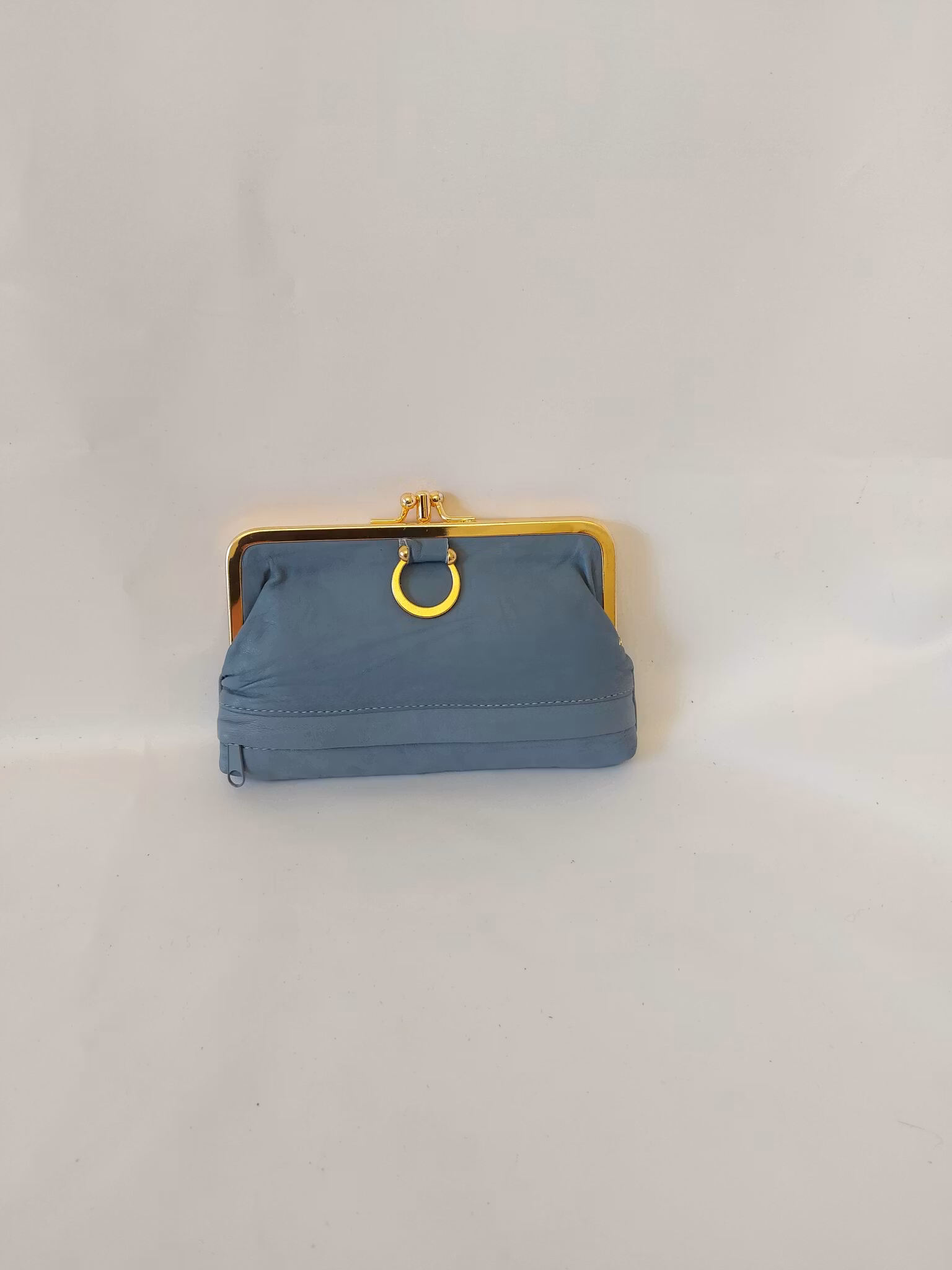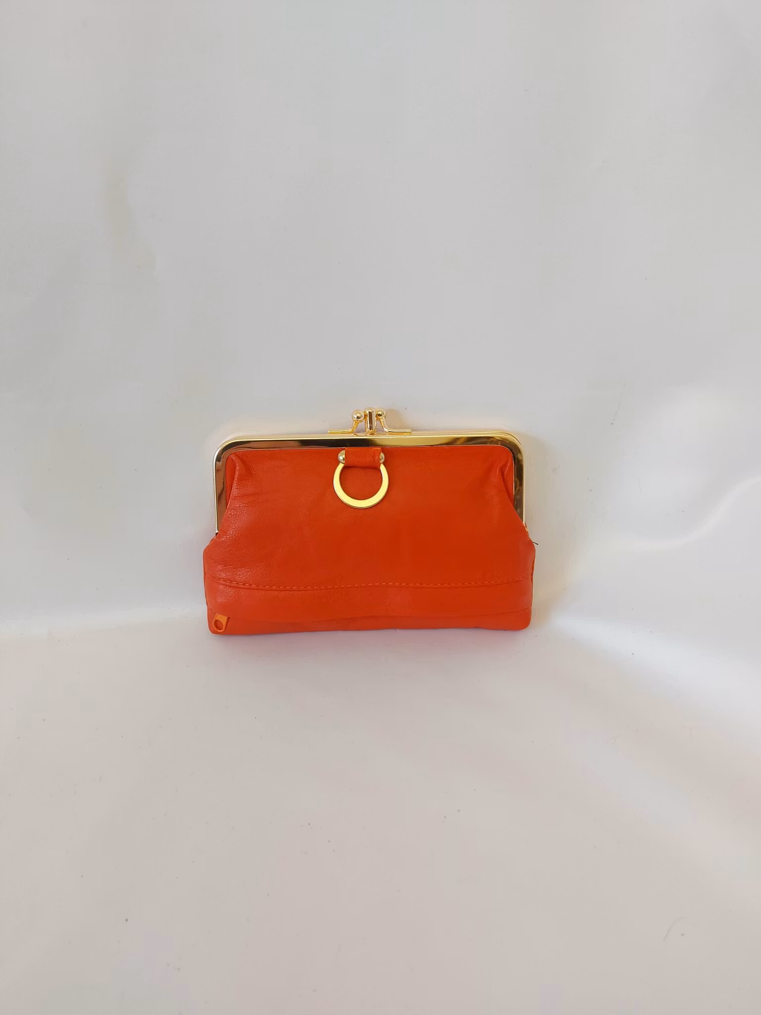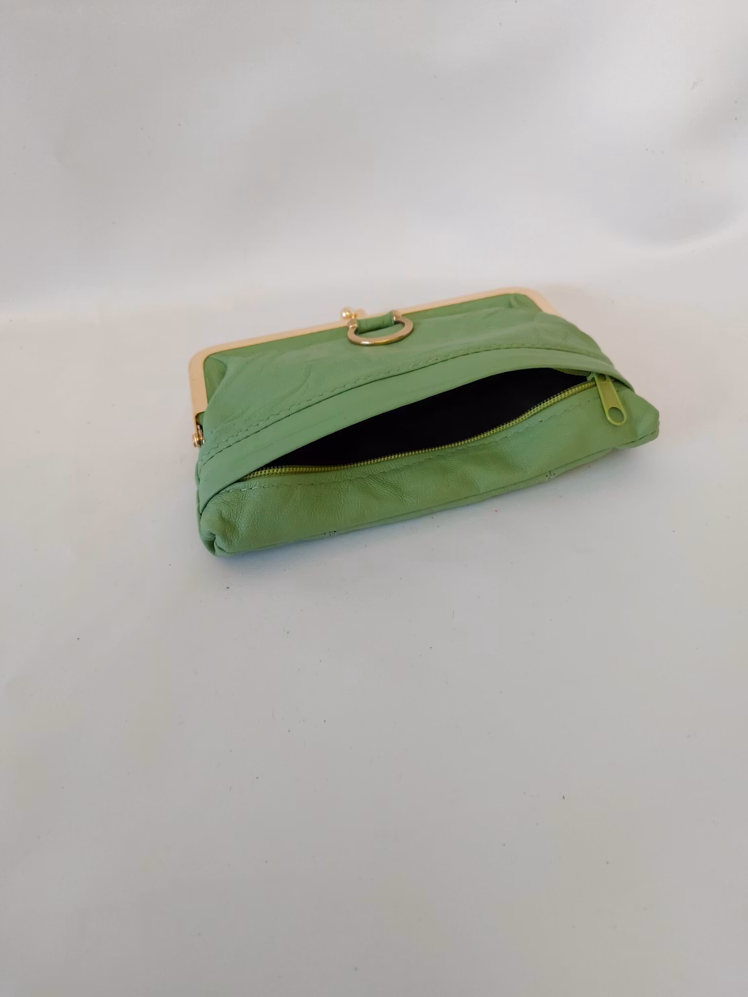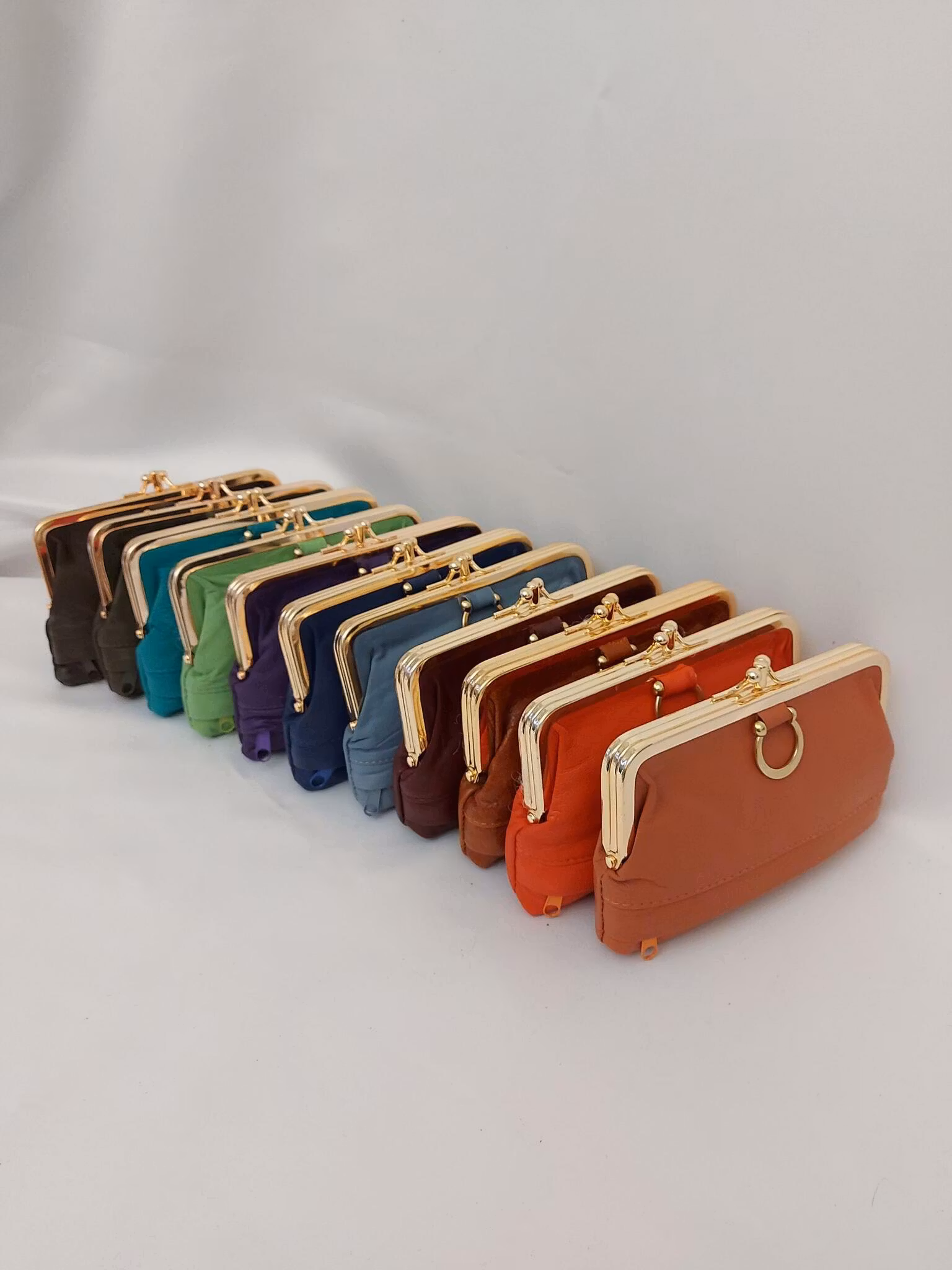 Portmonnä i skinn, platt, guldbygel 14 cm 11 olika färger