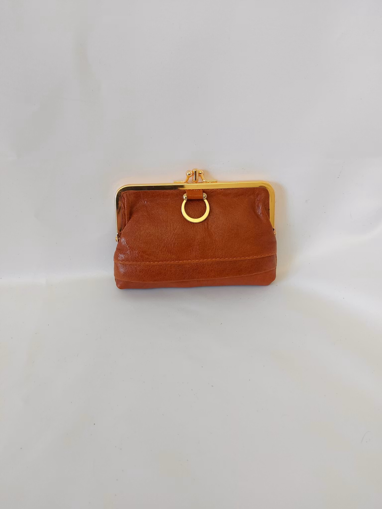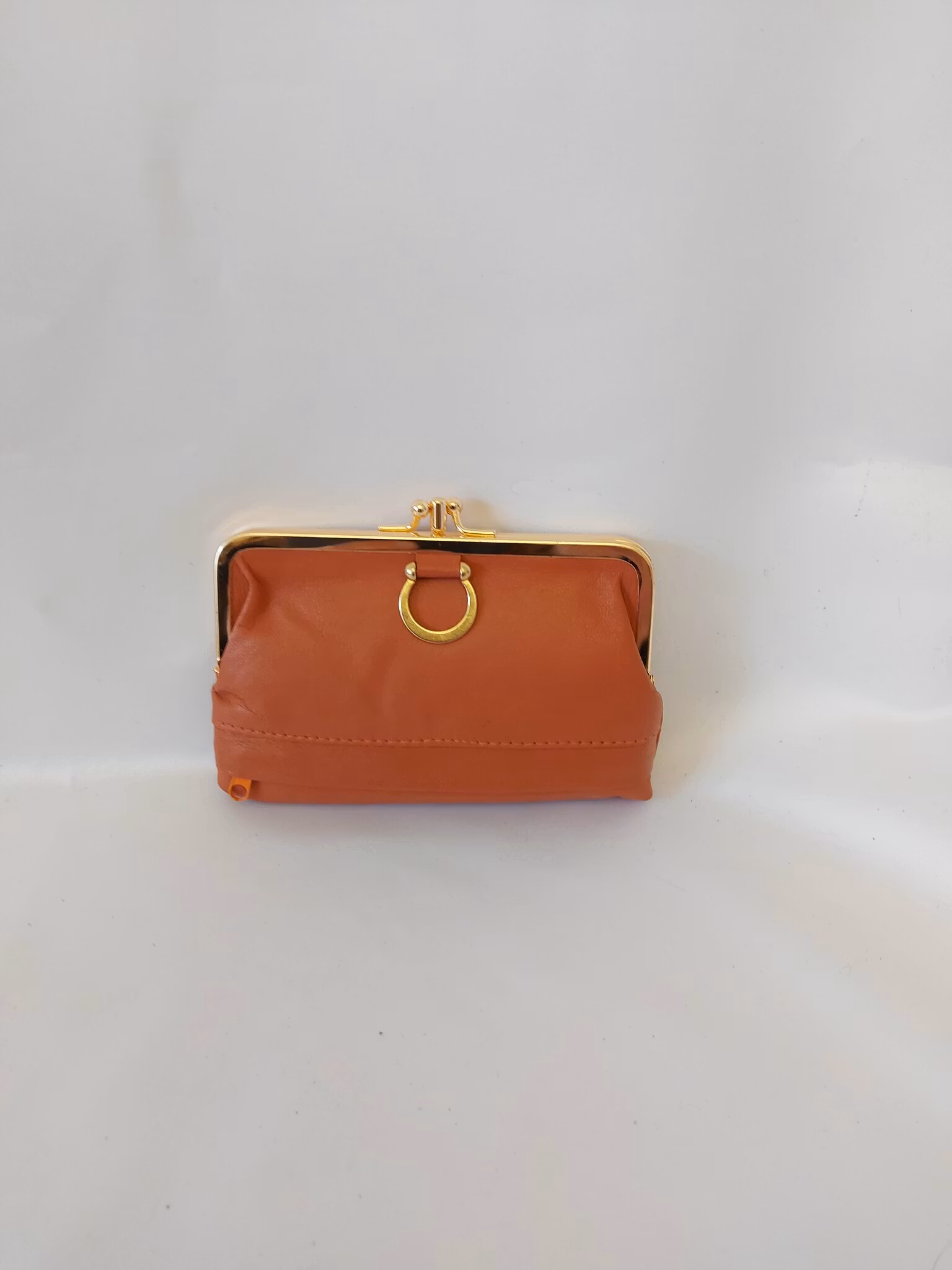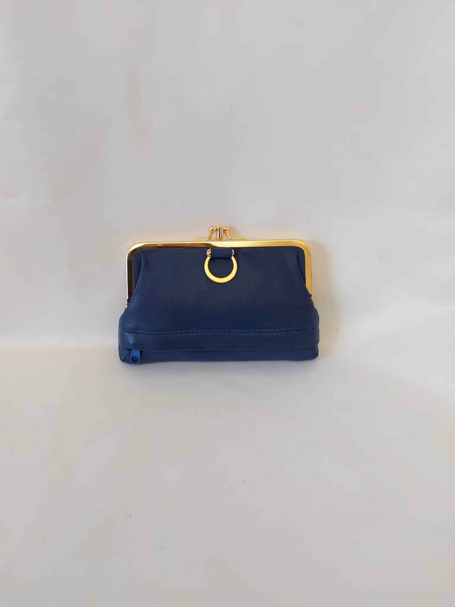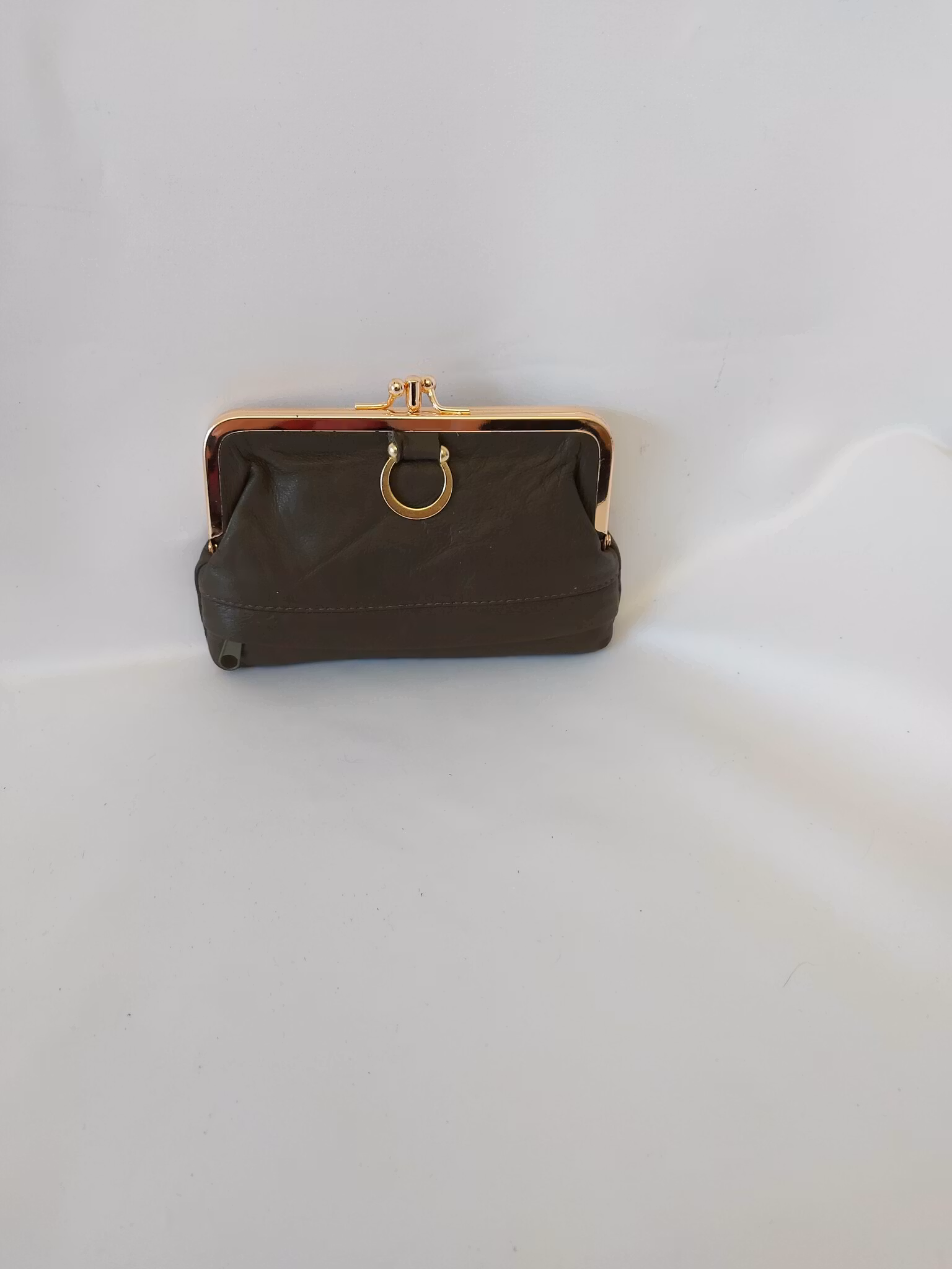 Portmonnä i skinn, platt, guldbygel 14 cm 11 olika färger