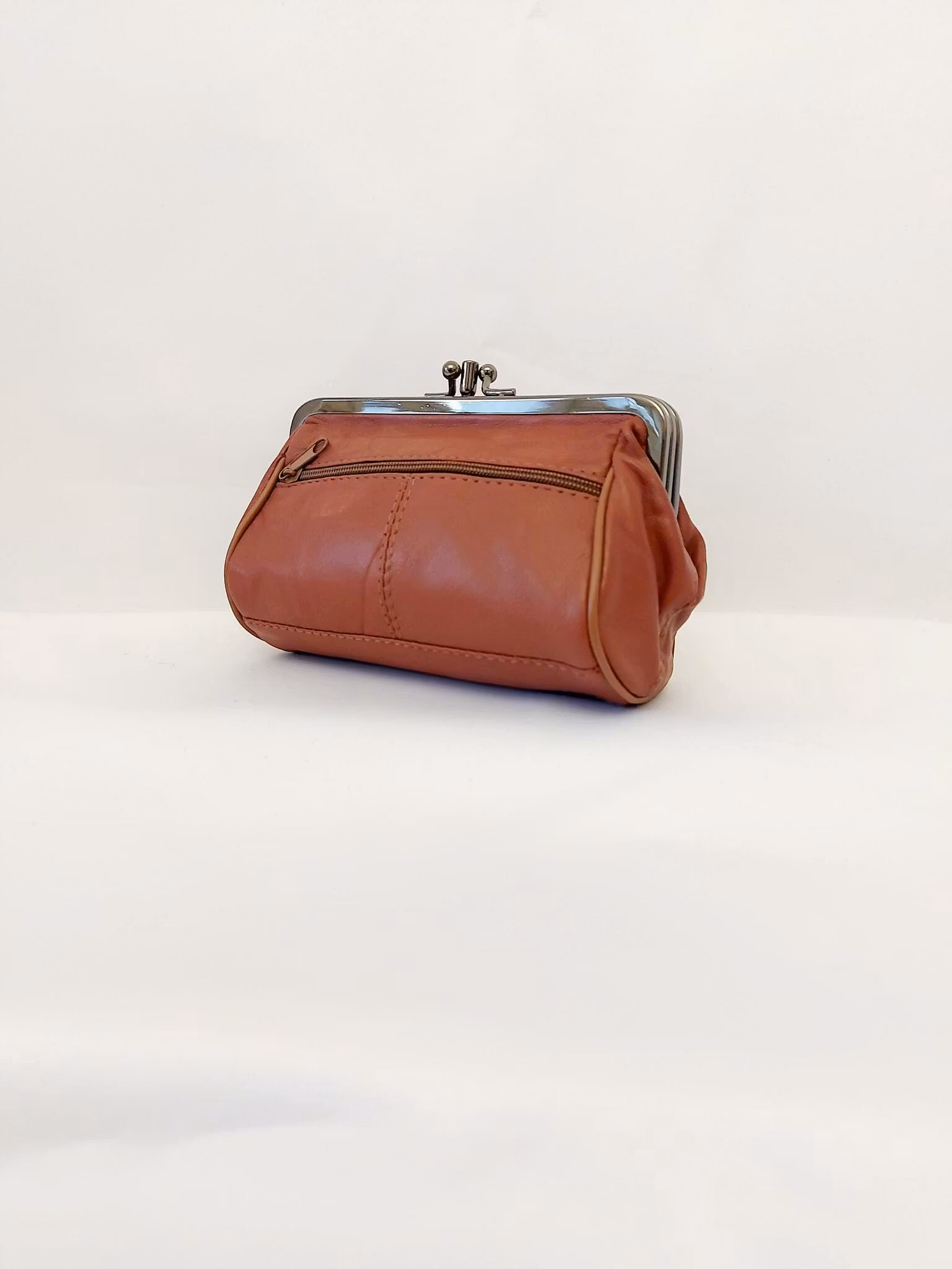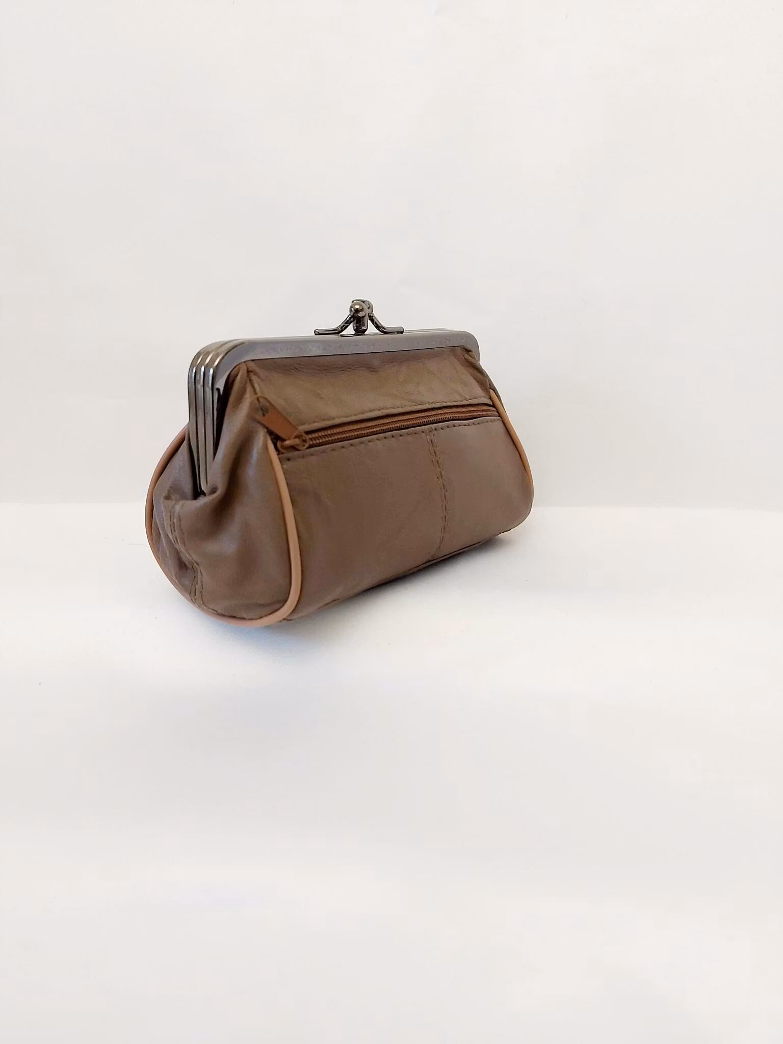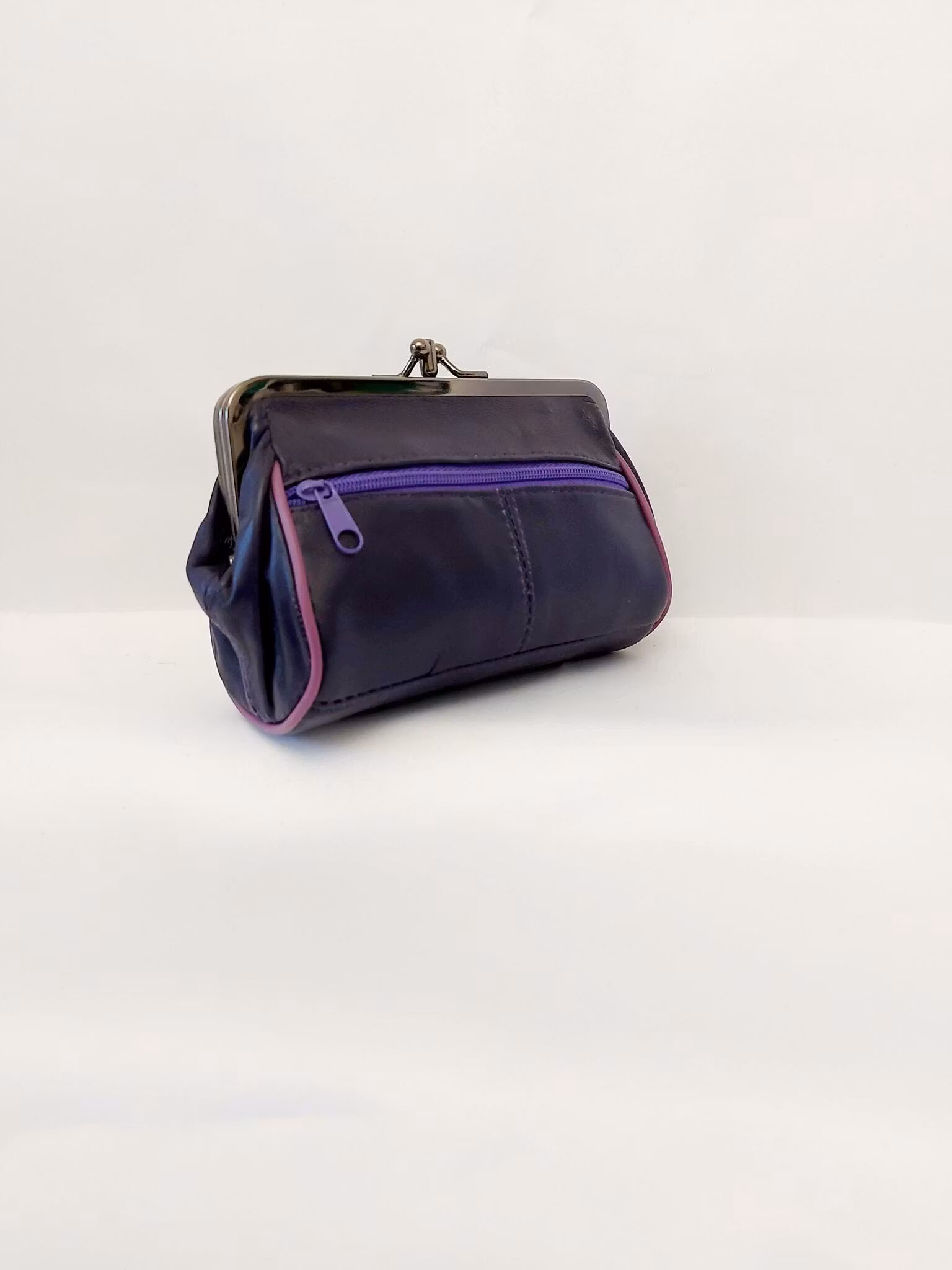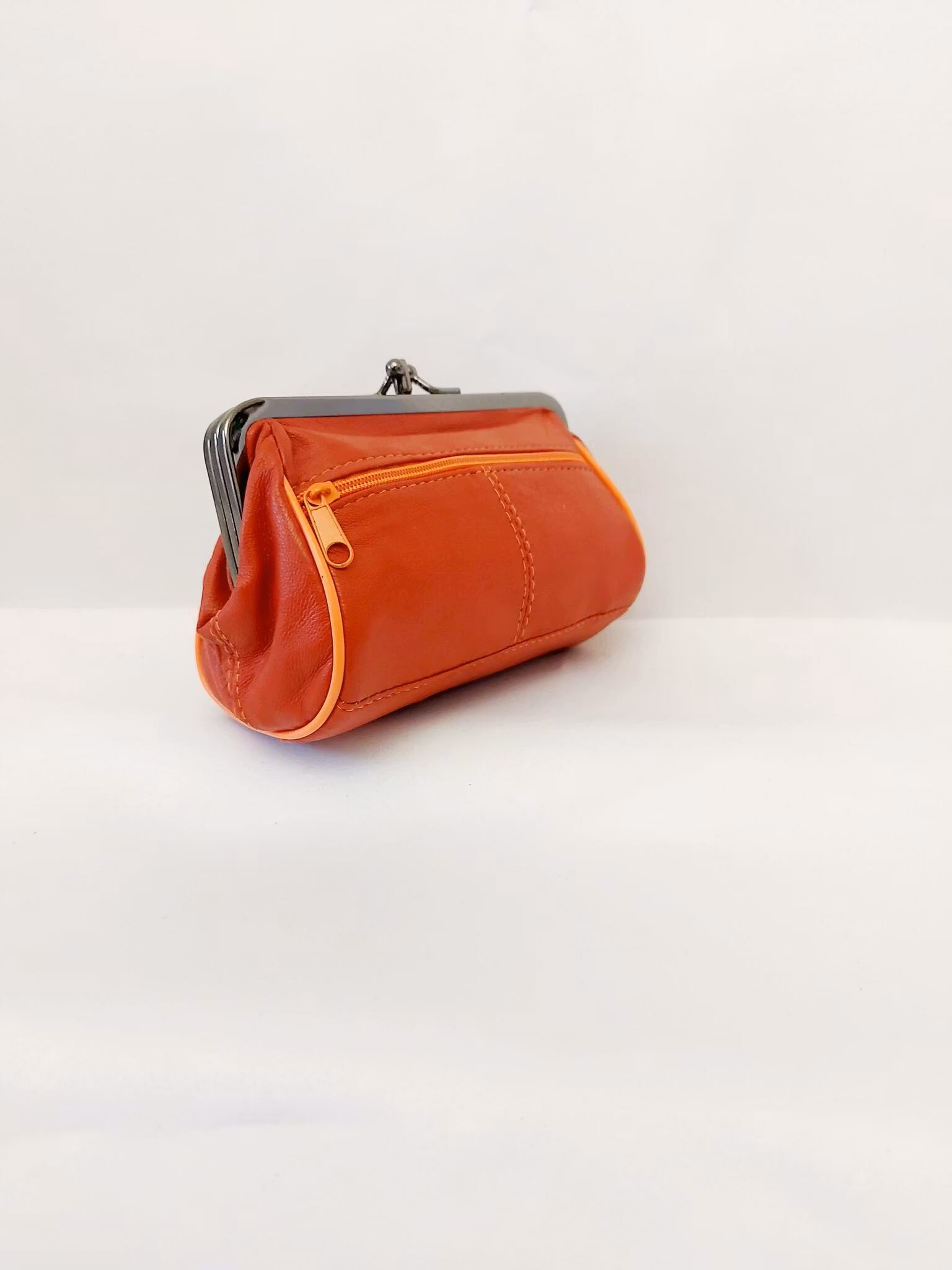 Portmonnä i skinn, rund, bygel 12 cm, flera olika färger