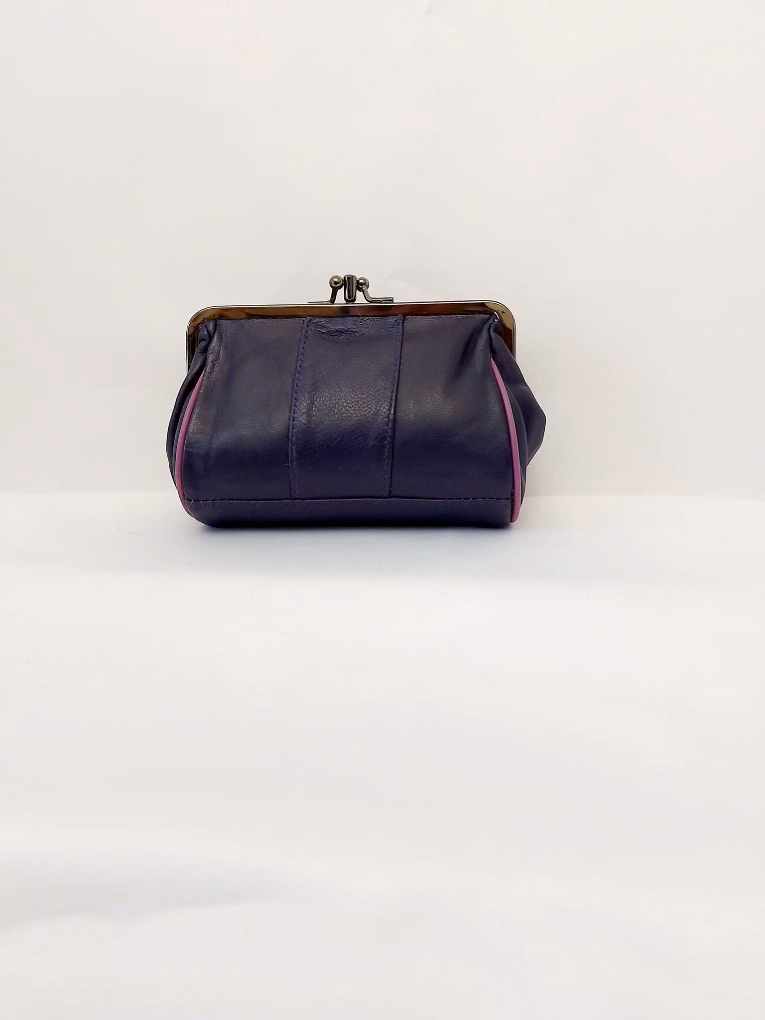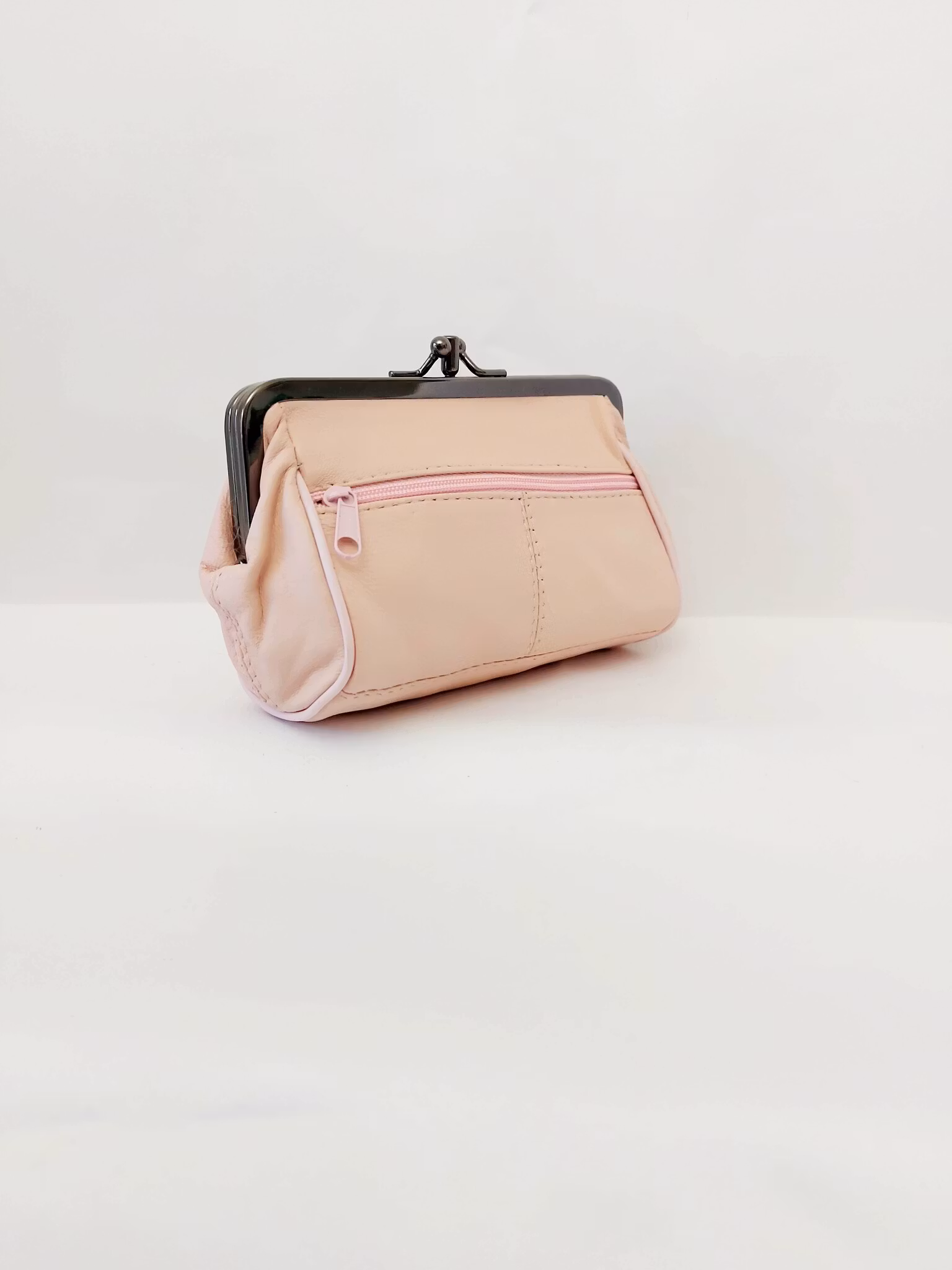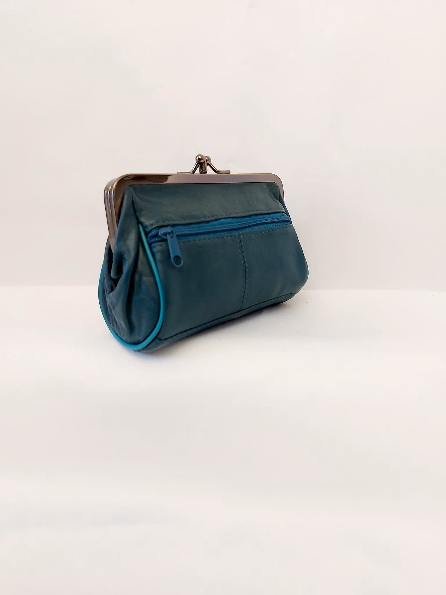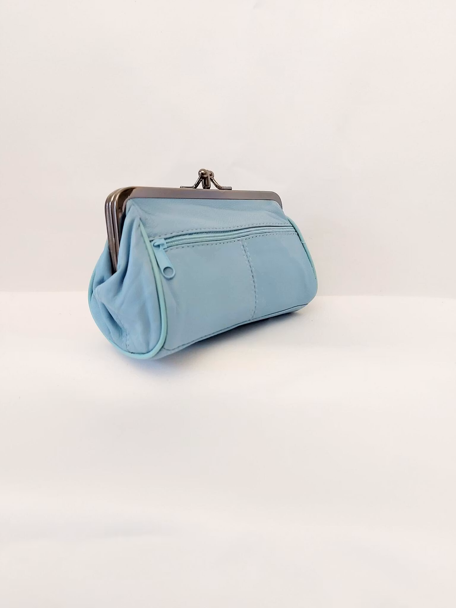 Portmonnä i skinn, rund, bygel 12 cm, flera olika färger