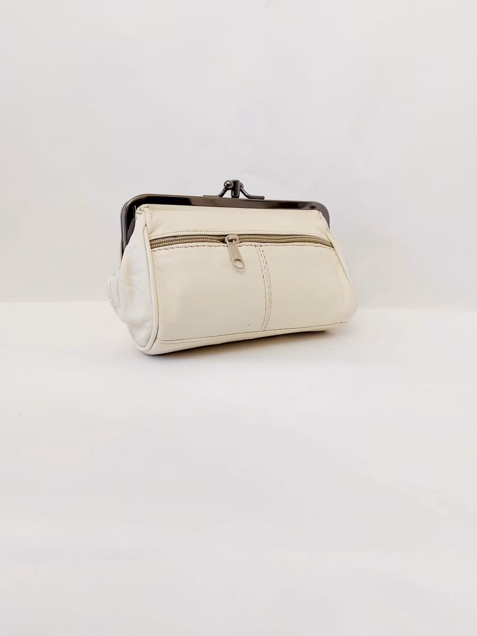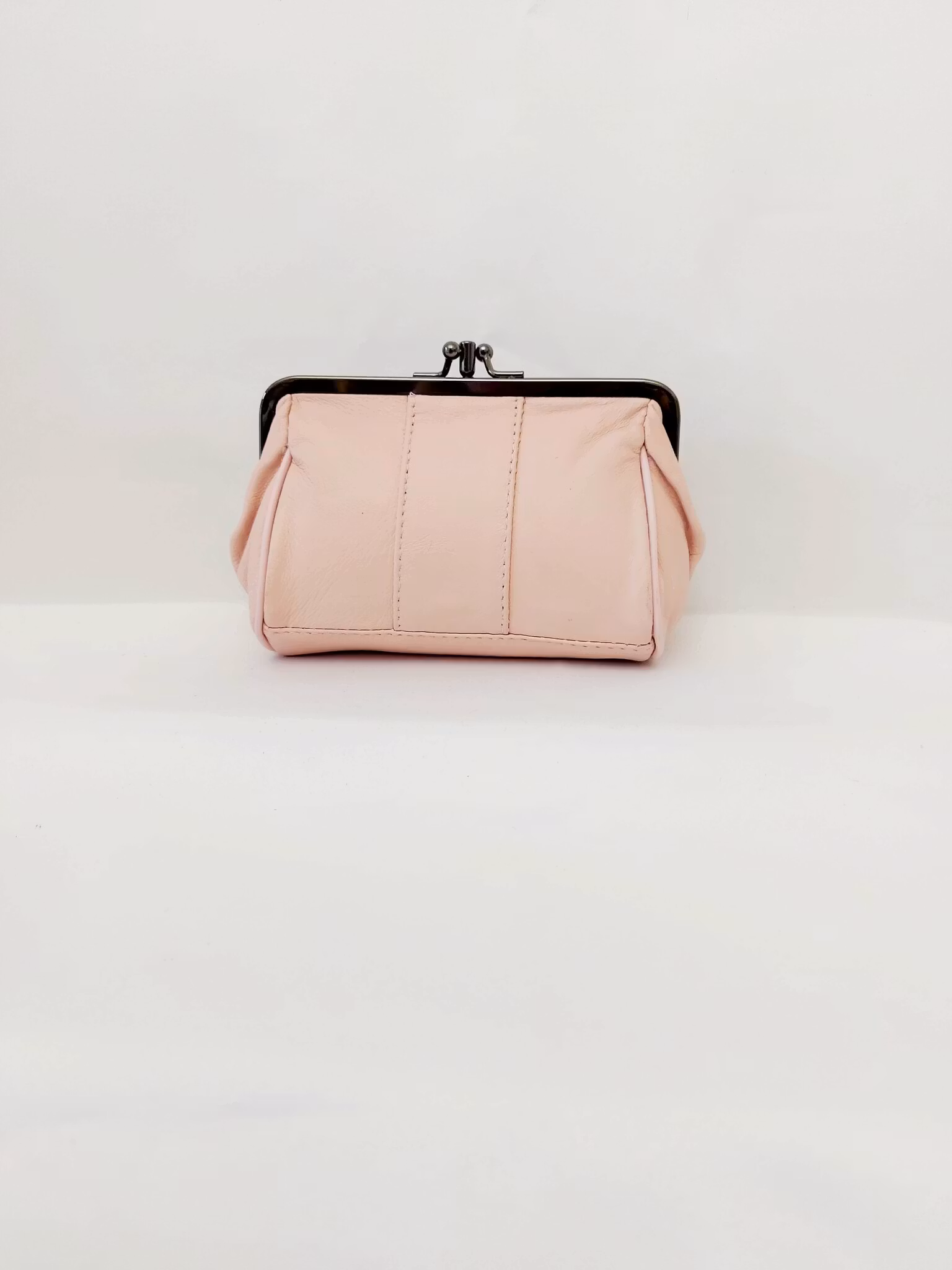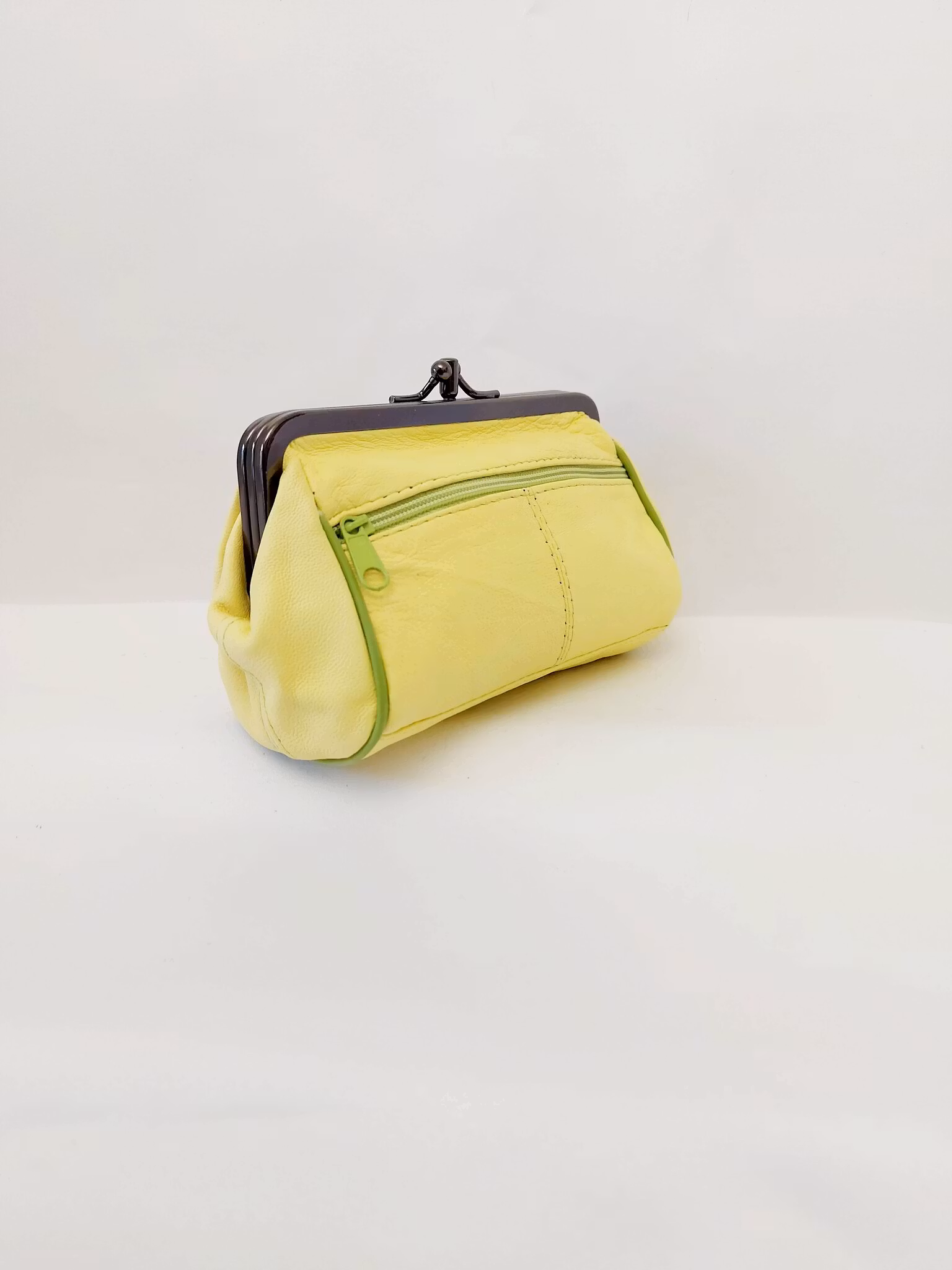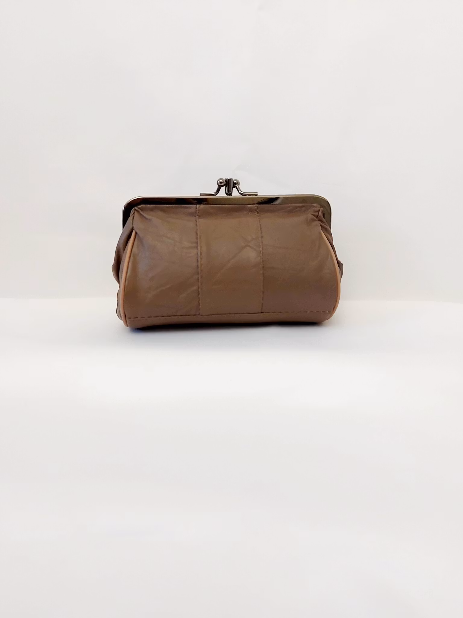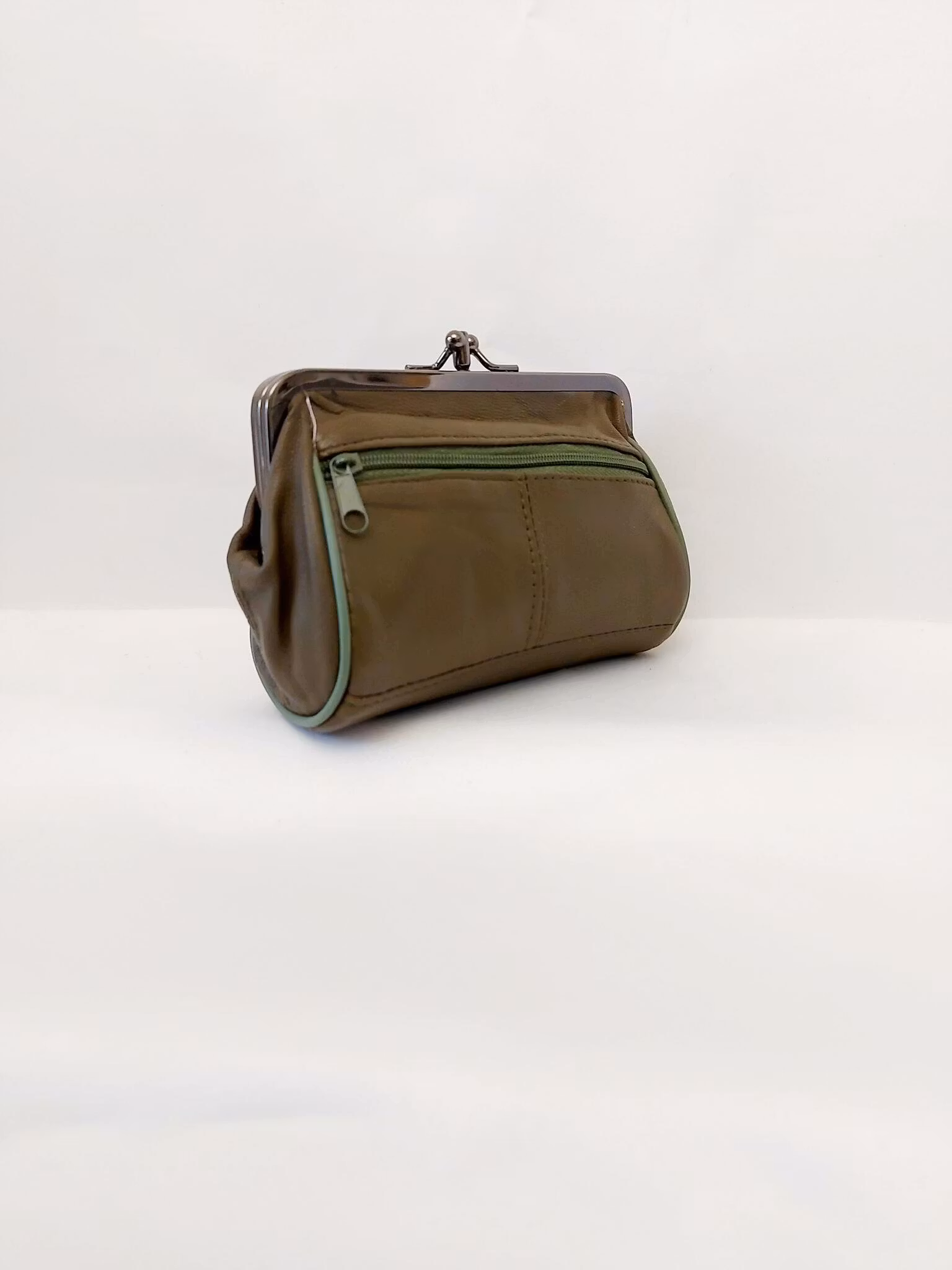 Portmonnä i skinn, rund, bygel 12 cm, flera olika färger