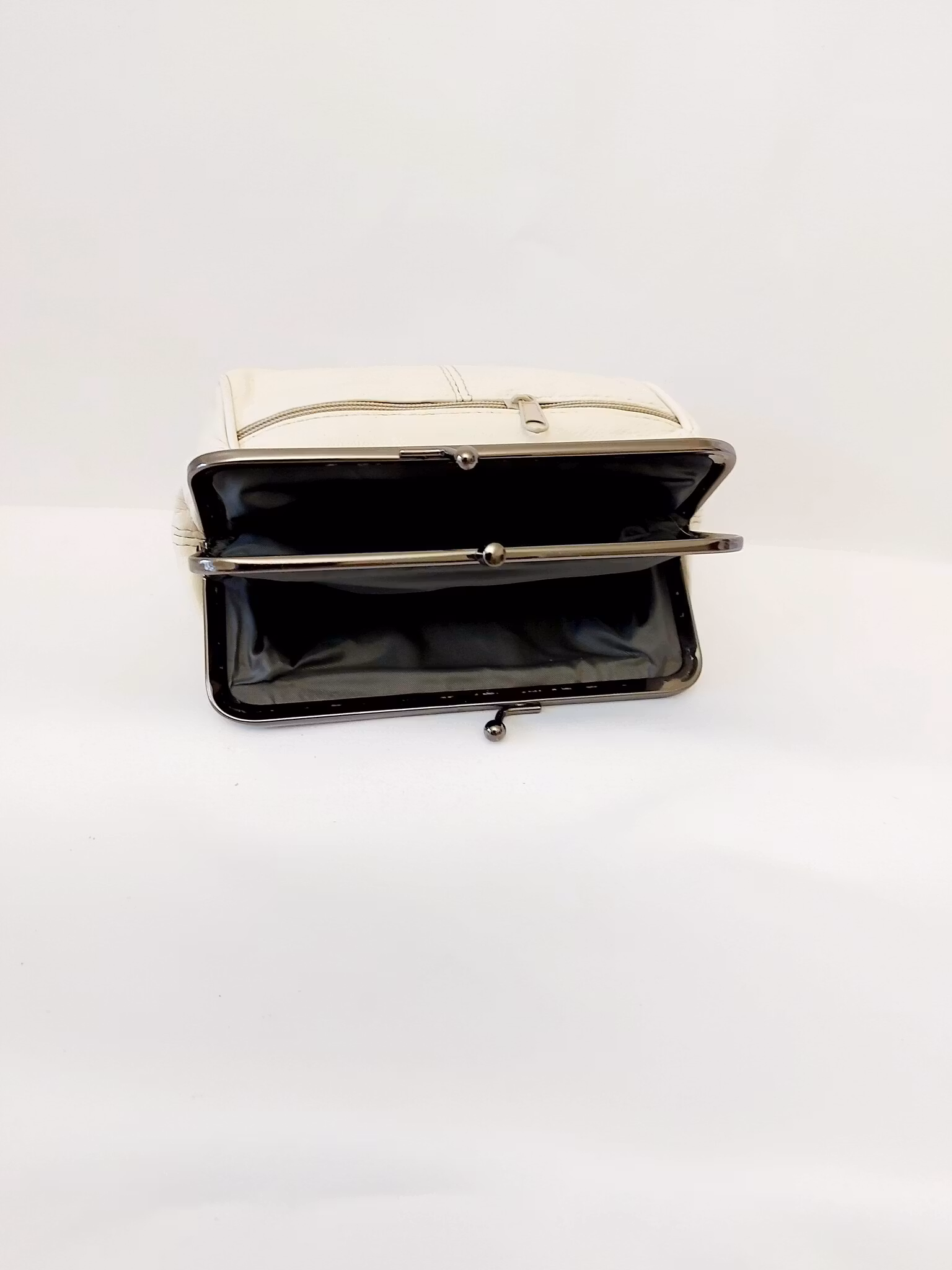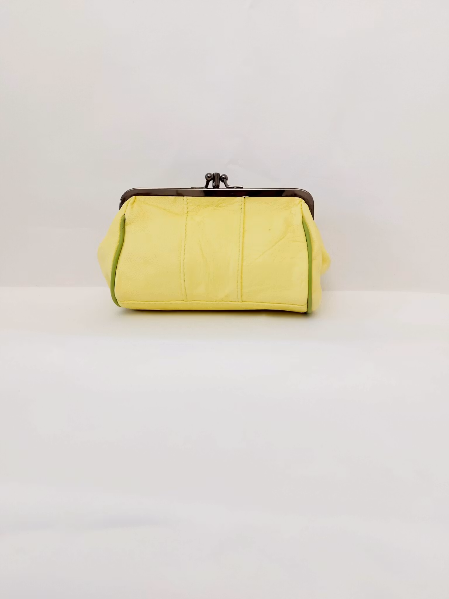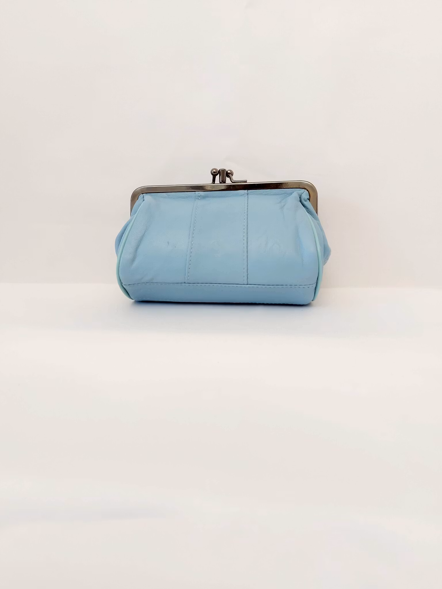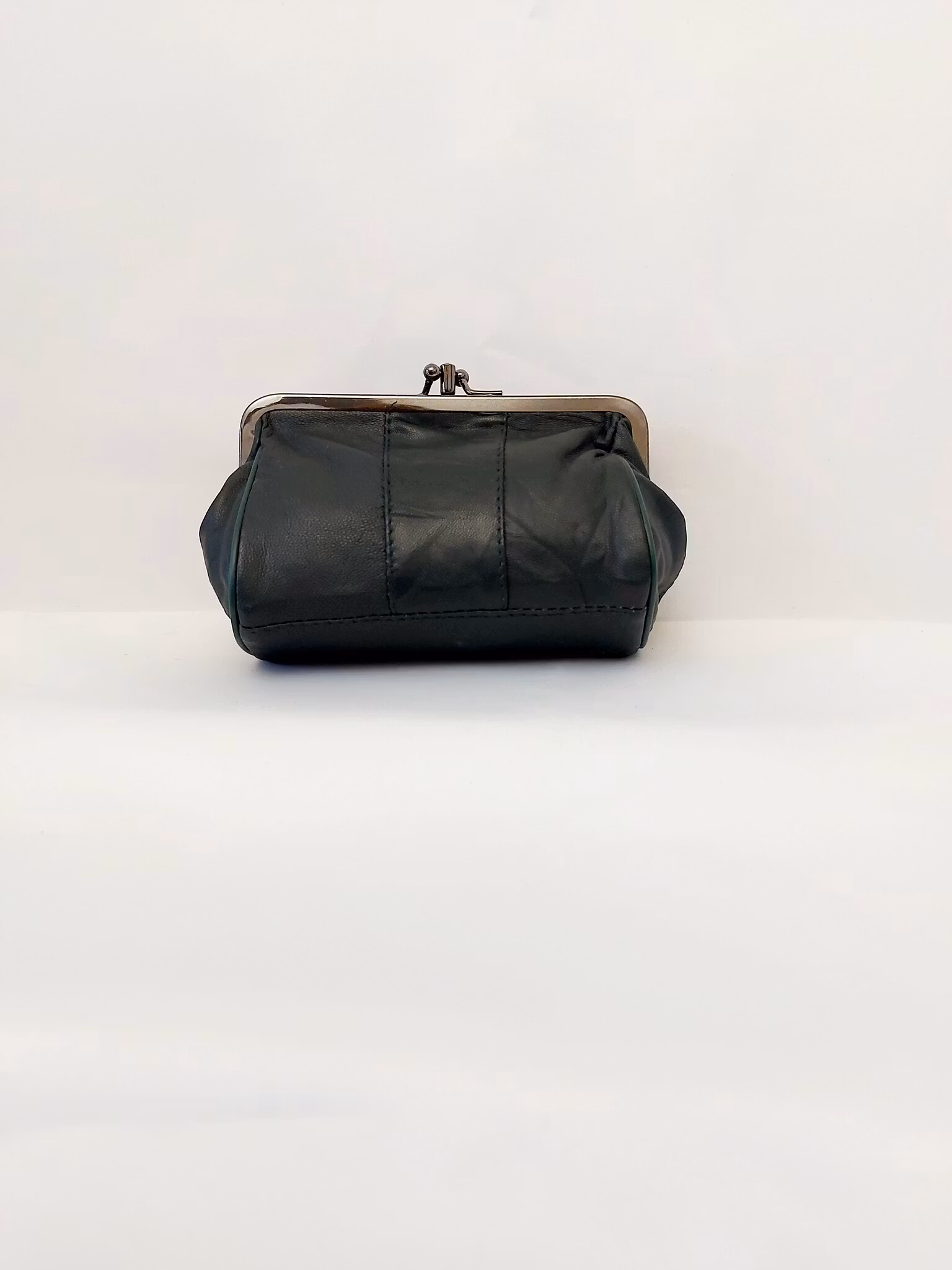 Portmonnä i skinn, rund, bygel 12 cm, flera olika färger