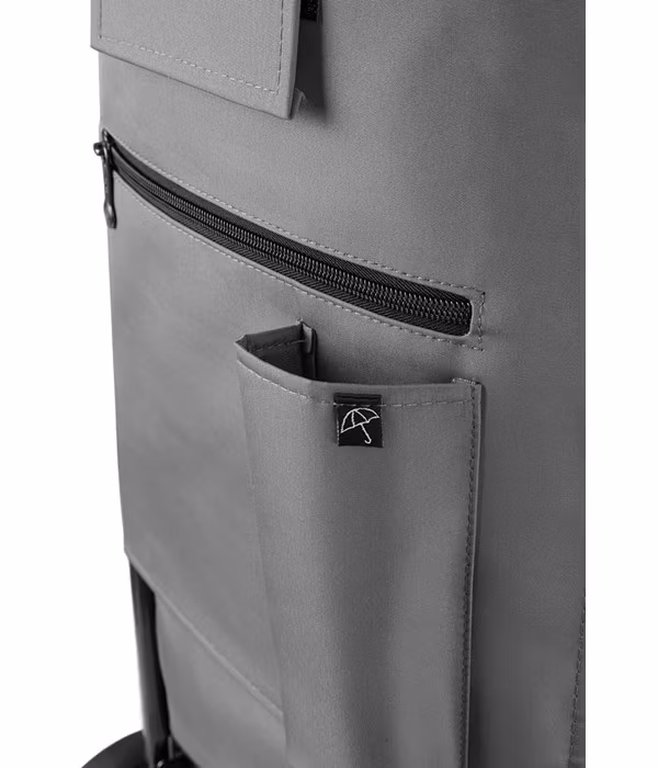 Väskan har en ficka med dragkedja för nycklar plånbok mm och en ficka för paraply eller scanner.