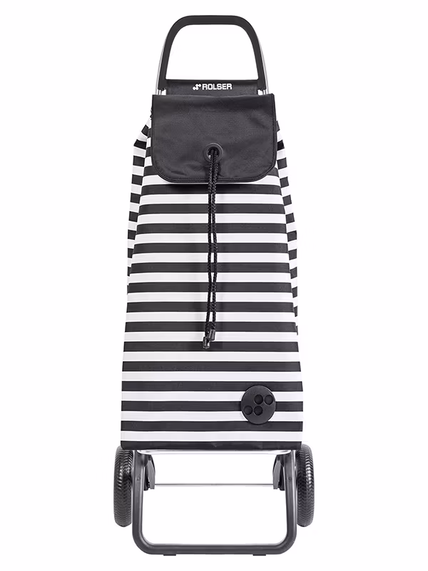 Rolser 2 Marina svart vit är är en enkel och smidig modell som är högre än Joy. Nederdelen är av aluminium och går att fälla in så att den tar mindre plats. Stora hjul som sitter stadigt och lossnar inte. Väskan rymmer 43 L. Ficka på utsidan och insidan. Rekommenderad vikt är 25 kg men den klarar 40 kg. Tyget är vattentätt och går lätt att torka av. Höjd 97,5 cm. 3 års fabriksgaranti.
