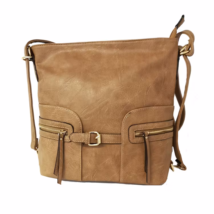 Tuff axelväska / kombiryggsäck i konstskinn. Gulddetaljer. Väskan stängs med dragkedja. Fack med dragkedja på baksidan och 2 på insidan samt 2 fack på framsidan. 2 mobilfack. Mått 31*31*12 cm