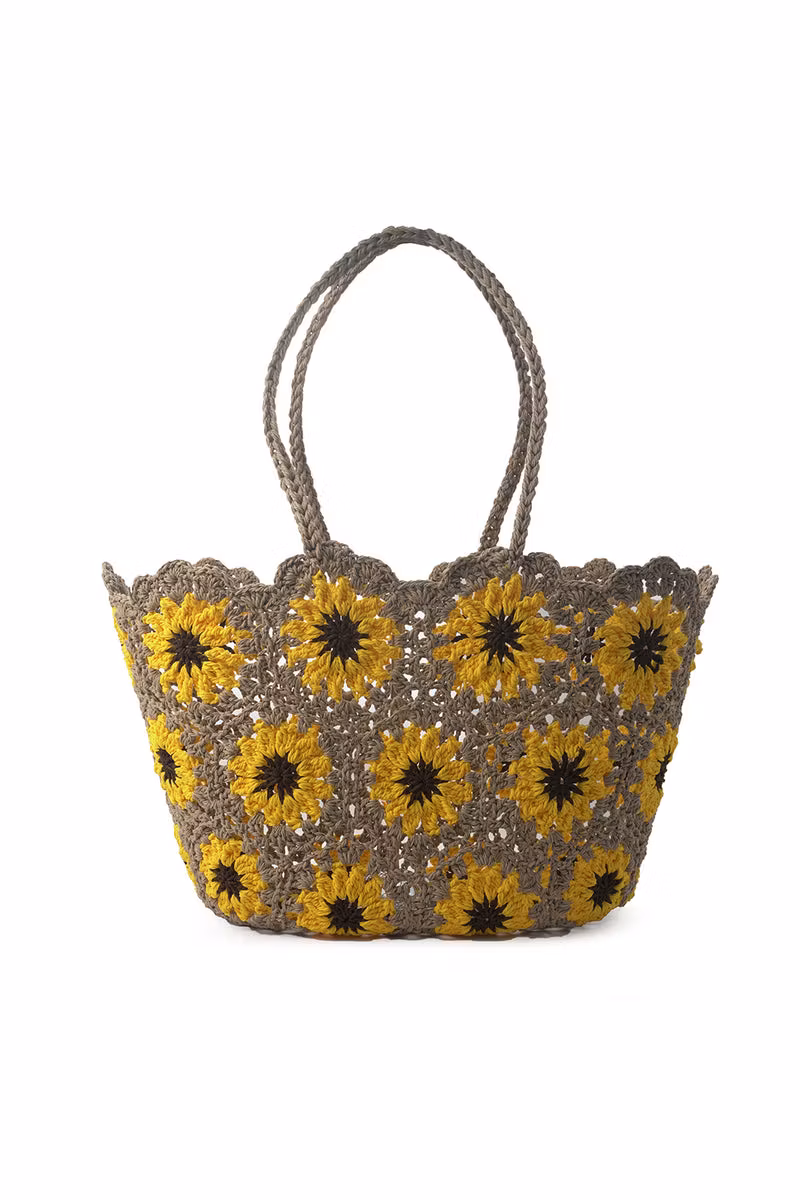 CEANNIS CROCHET BASKET SUNFLOWER , korgväska med blommönster.