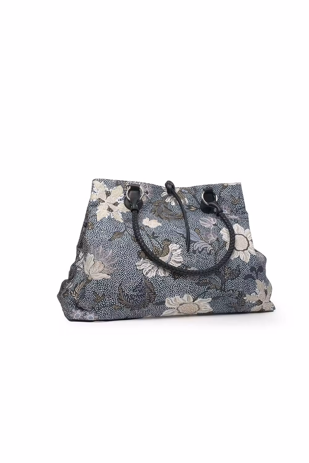WEEKEND BAG DENIM BLUE FLOWER LINEN - Ceannis.