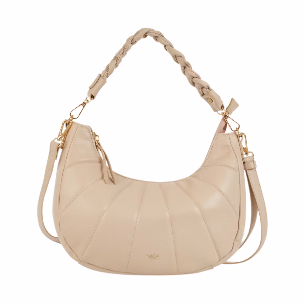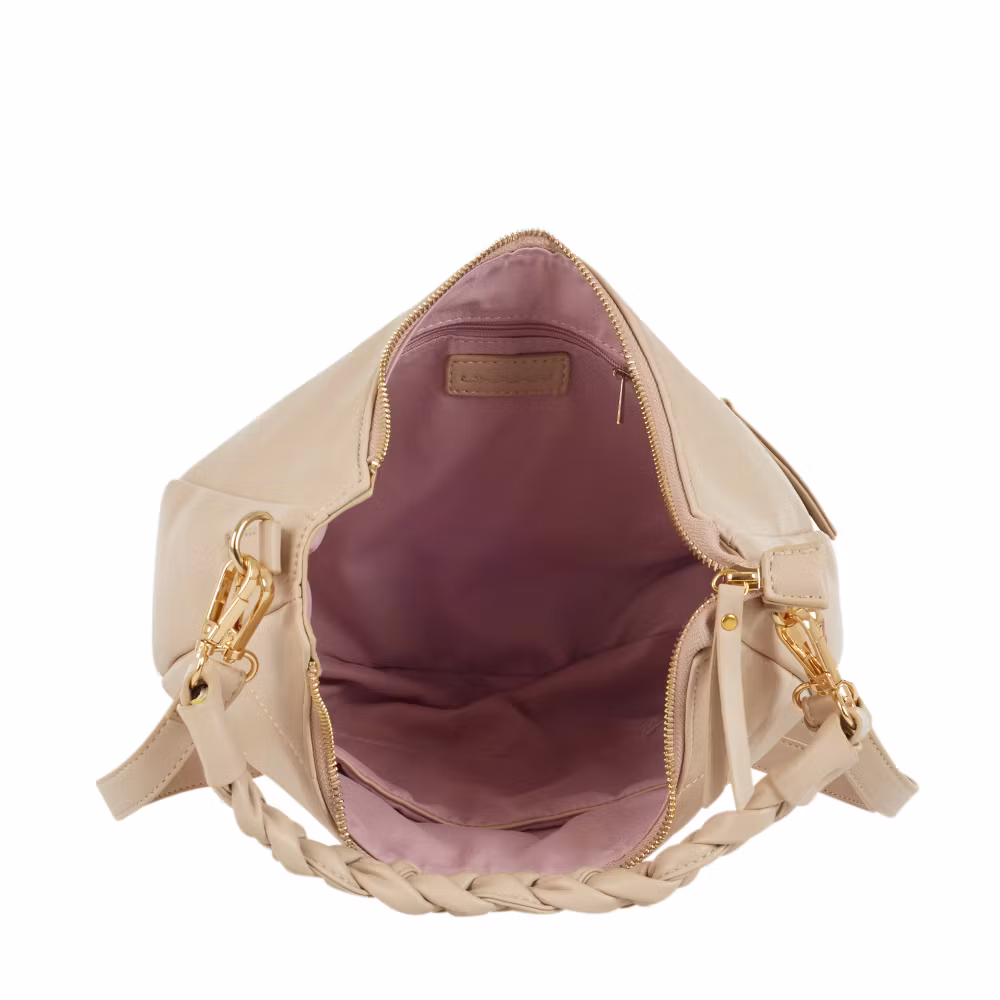 Axelremsväska Beige i Hobo stil med flätad kort rem, från Ulrika Design kollektion Fan.