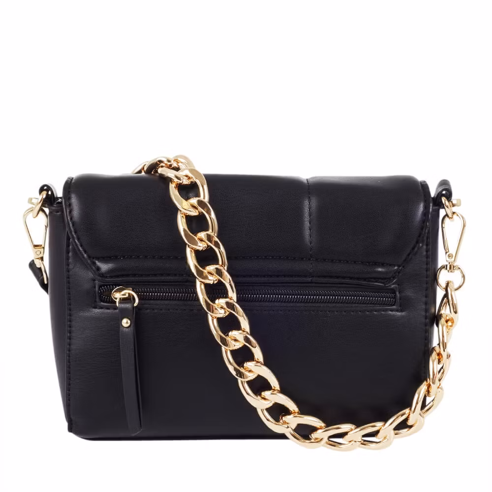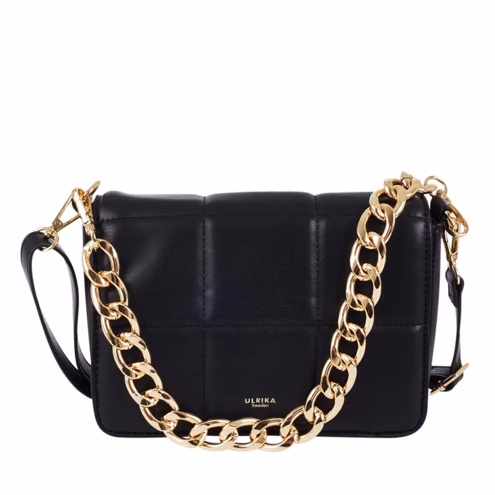 Axelremsväska svart med quiltat lock och kedja, från Ulrika Design kollektion Fan.
