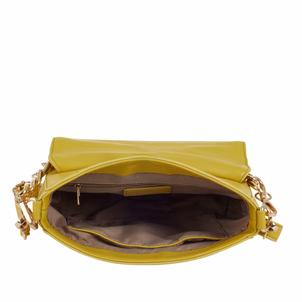 Inuti är axelväskan fodrad med ett ljust enfärgat bomullstyg.