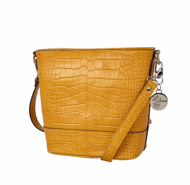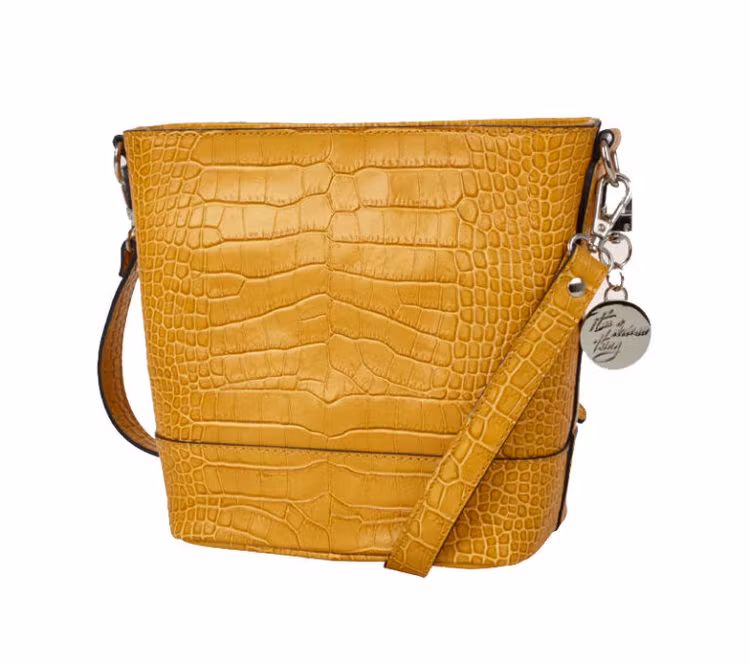 Axelremsväska från Ulrika Design i gult croco präglat italienskt skinn.