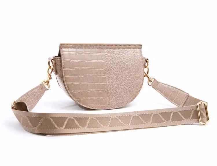 Axelremsväska croco halvmåne Hanna beige 693305 Rosenvinge