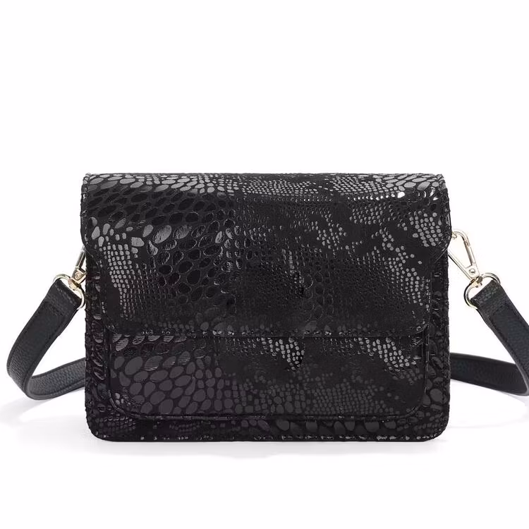 Finaste väskan i precis rätt storlek och snygg melerad svart färg med ett fint print.