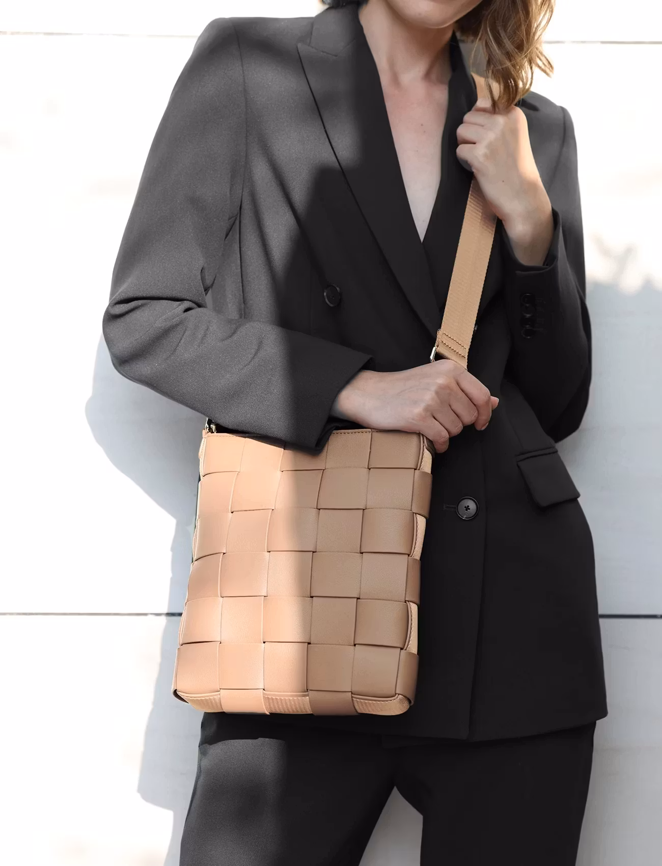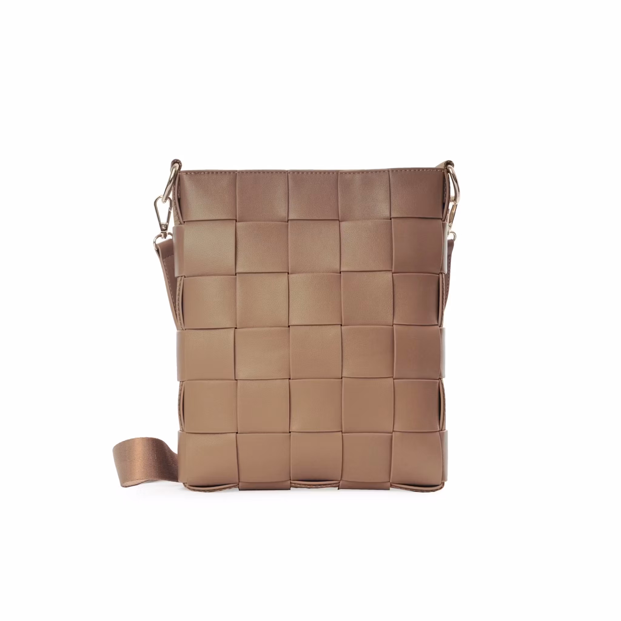 Klassisk och stilren axelremsväska i flätat veganläder.