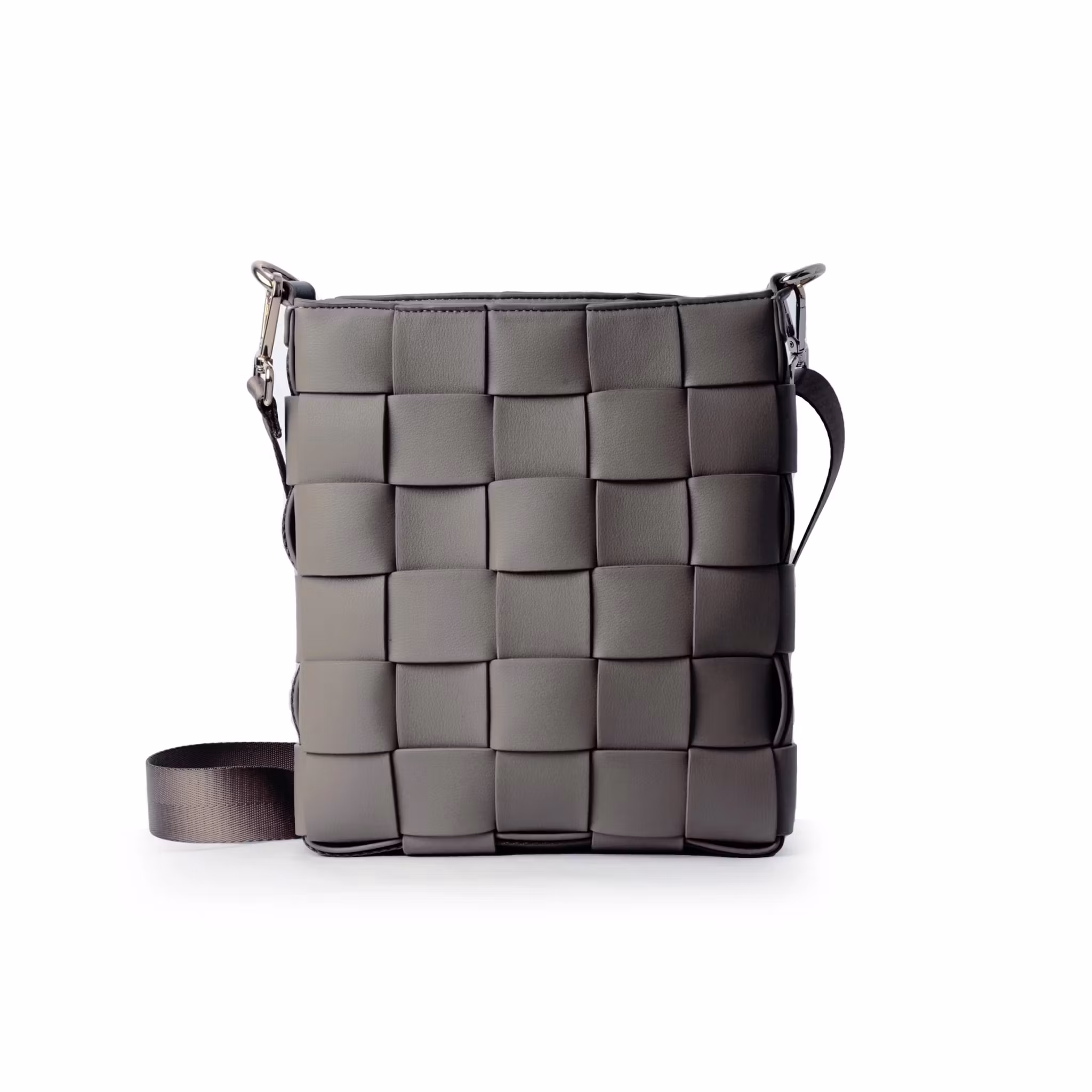 Klassisk och stilren axelremsväska i flätat veganläder.