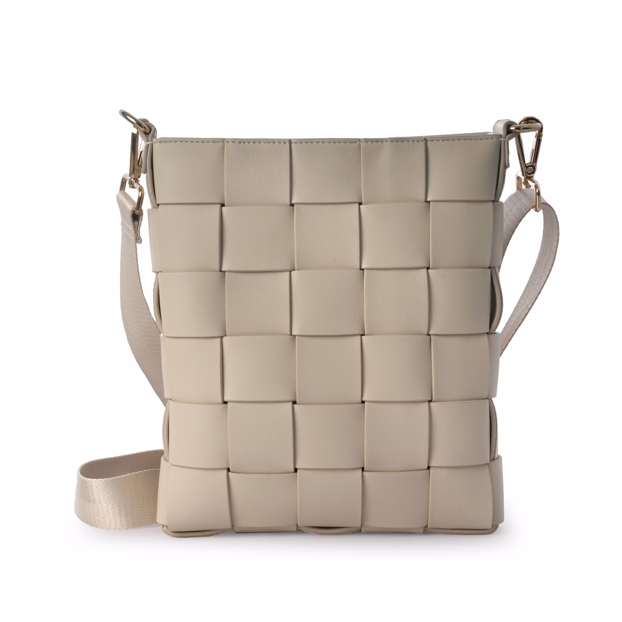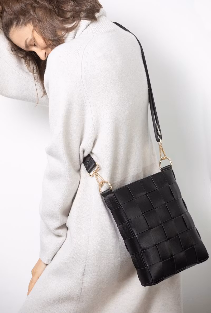 Klassisk och stilren axelremsväska i flätat veganläder.