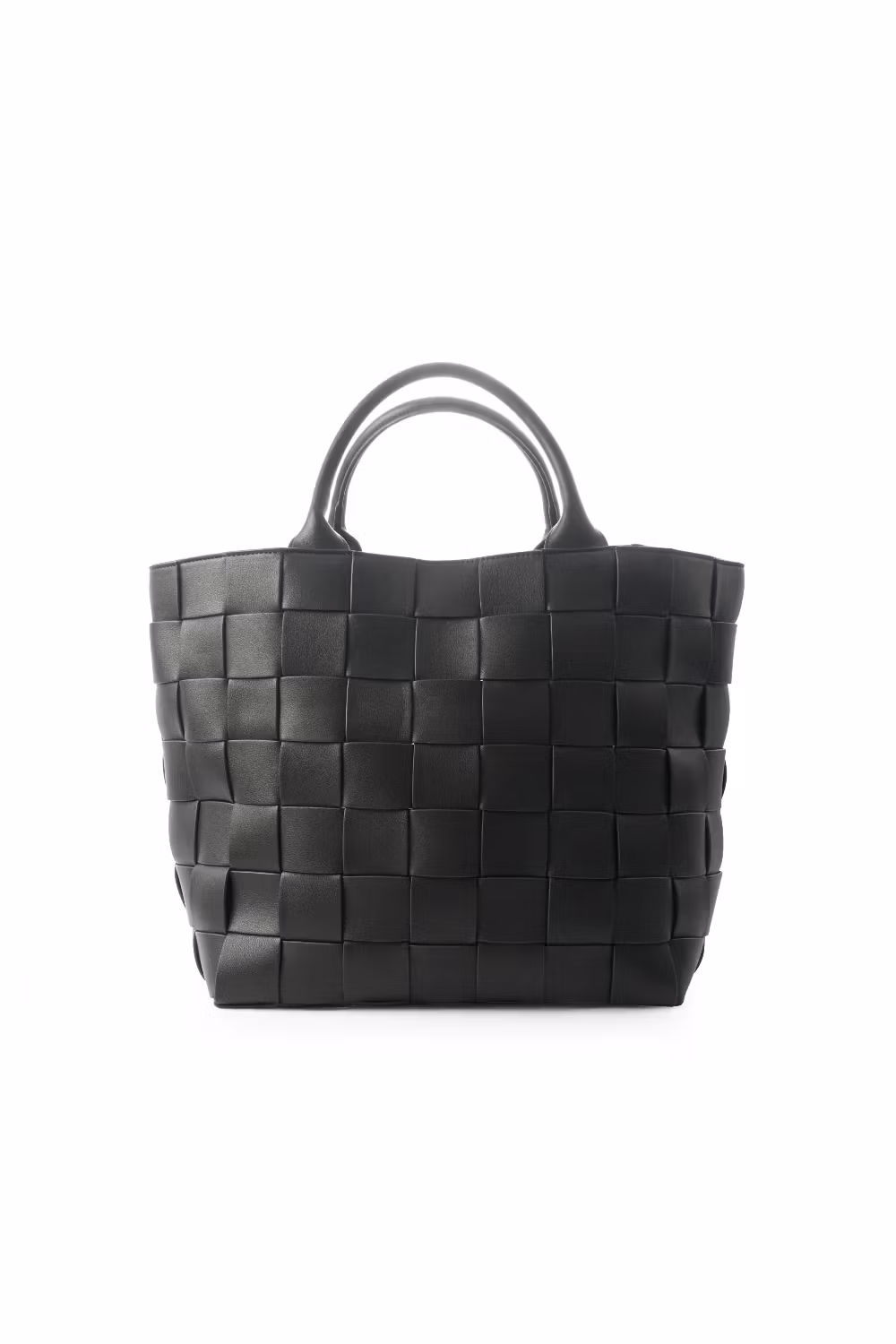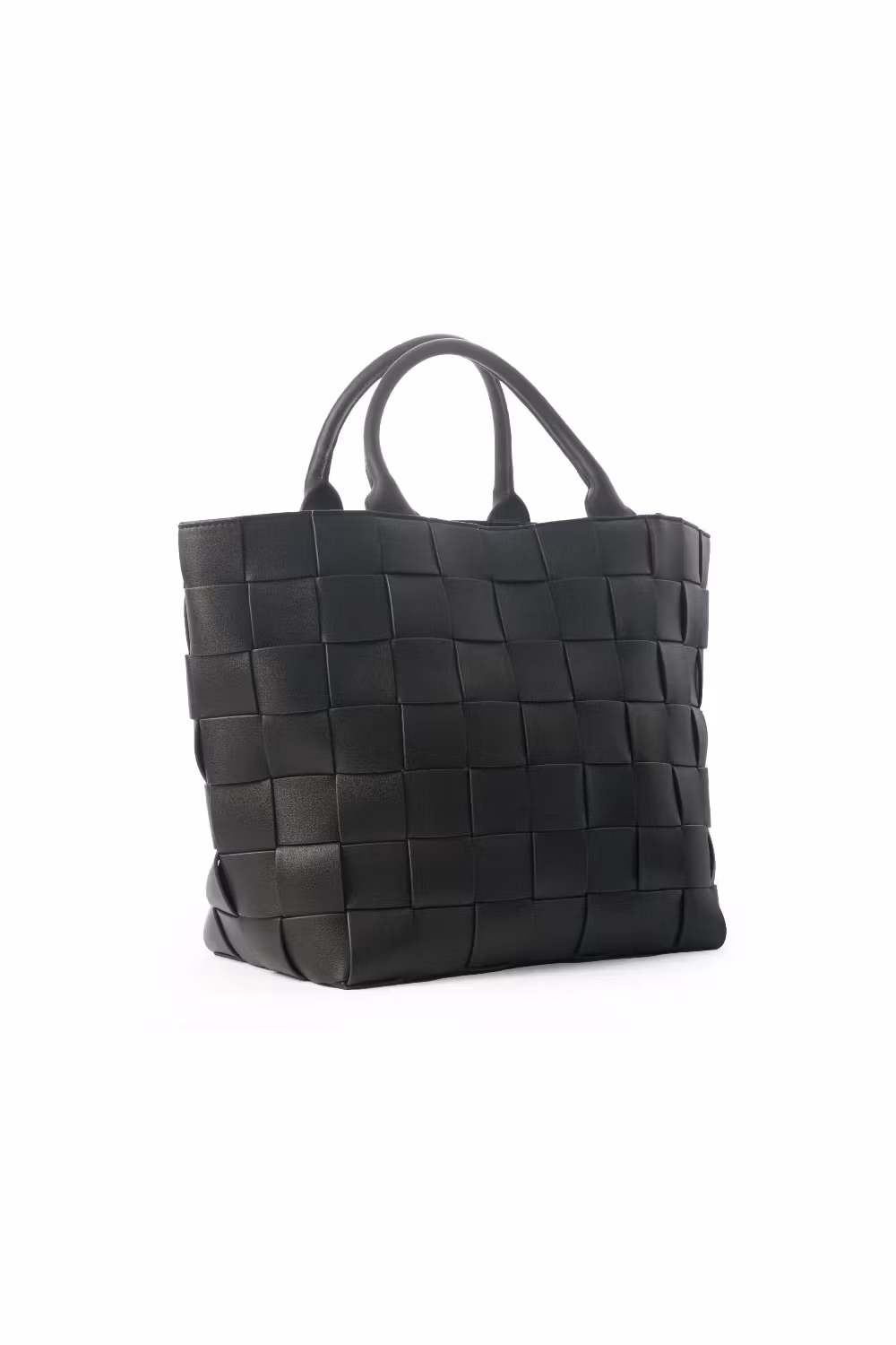 Denna väska är ett mästerverk tillverkat i högkvalitativt veganläder med ett intrikat flätat mönster som ger en exklusiv känsla. De rundsydda handtagen erbjuder optimal komfort när du bär dina vardagsessentiella saker, oavsett om det är genom stadens myller eller till kontoret.