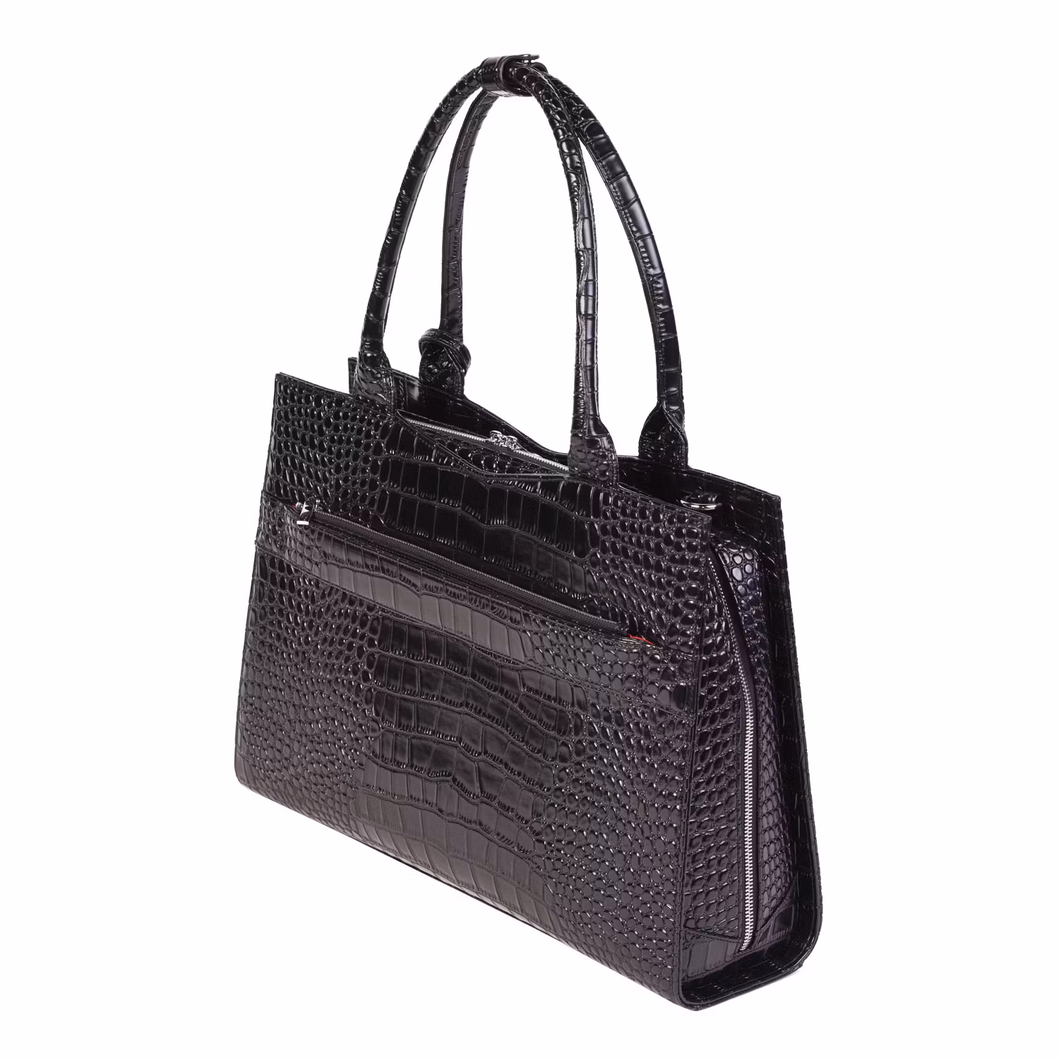 Handväska Dam med axelrem, Croco Jet Black 15,6", Socha Design