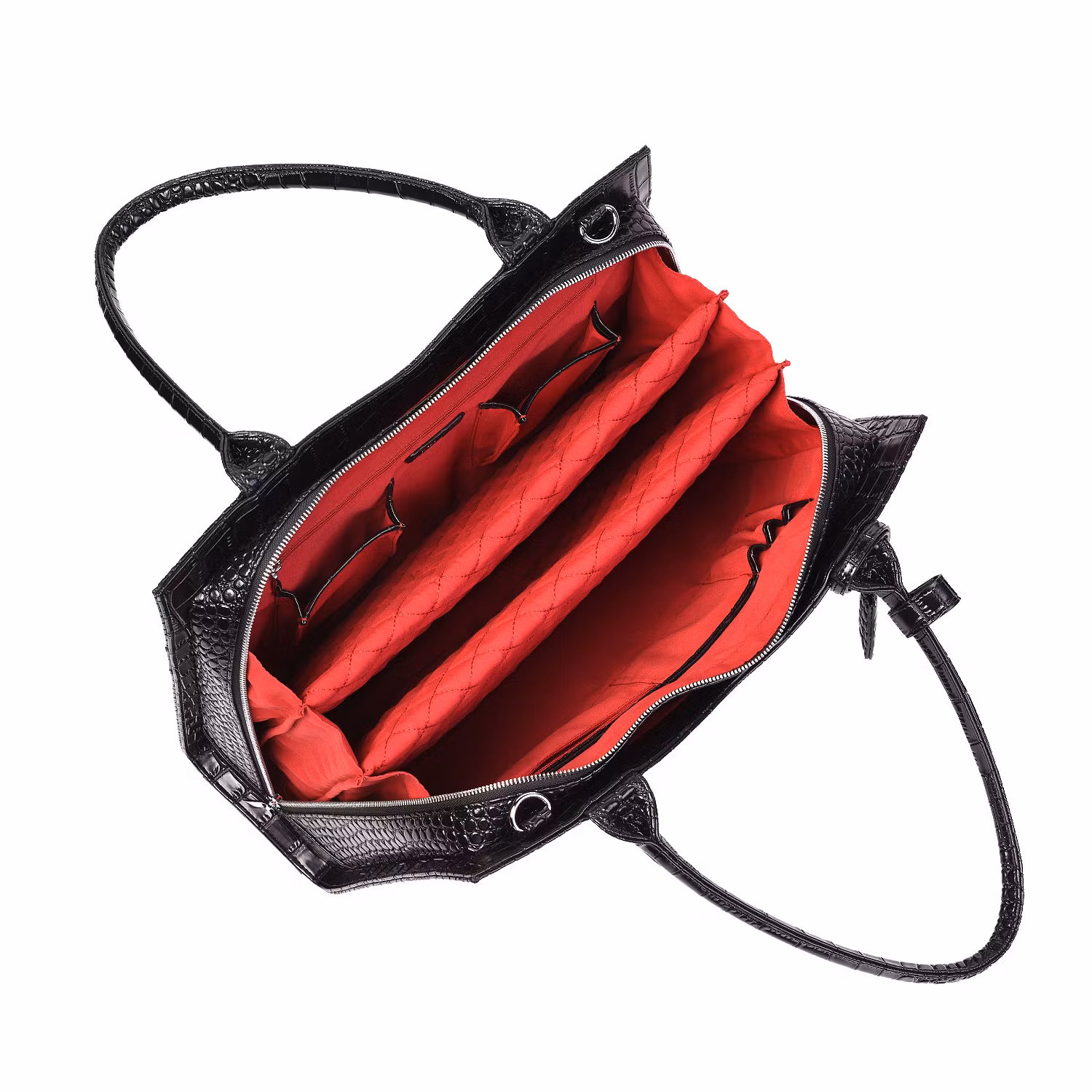 Finessen med denna väskan är den långa dragkedjan som går ner på sidorna av väskan och ger en bred öppning, du kommer lätt åt innehållet. Fantastisk vacker struktur, som en svart diamant. Materialet på denna affärsväskan är extra mjukt, men är också mycket robust.