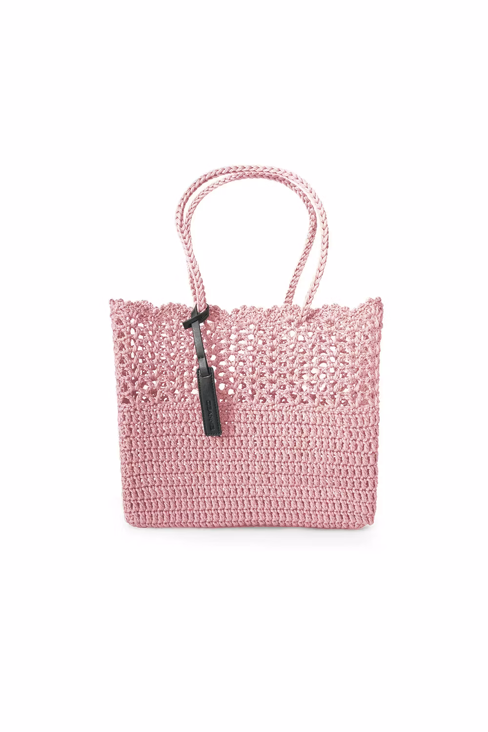CEANNIS SQUARE CROCHET BASKET Rosa, korgväska.