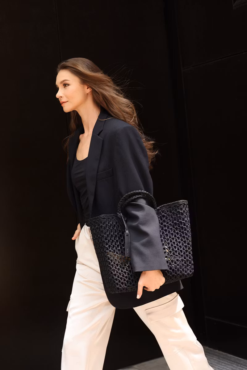 CEANNIS BASKET ROUND HANDLE (runda handtag), korgväska i svart.