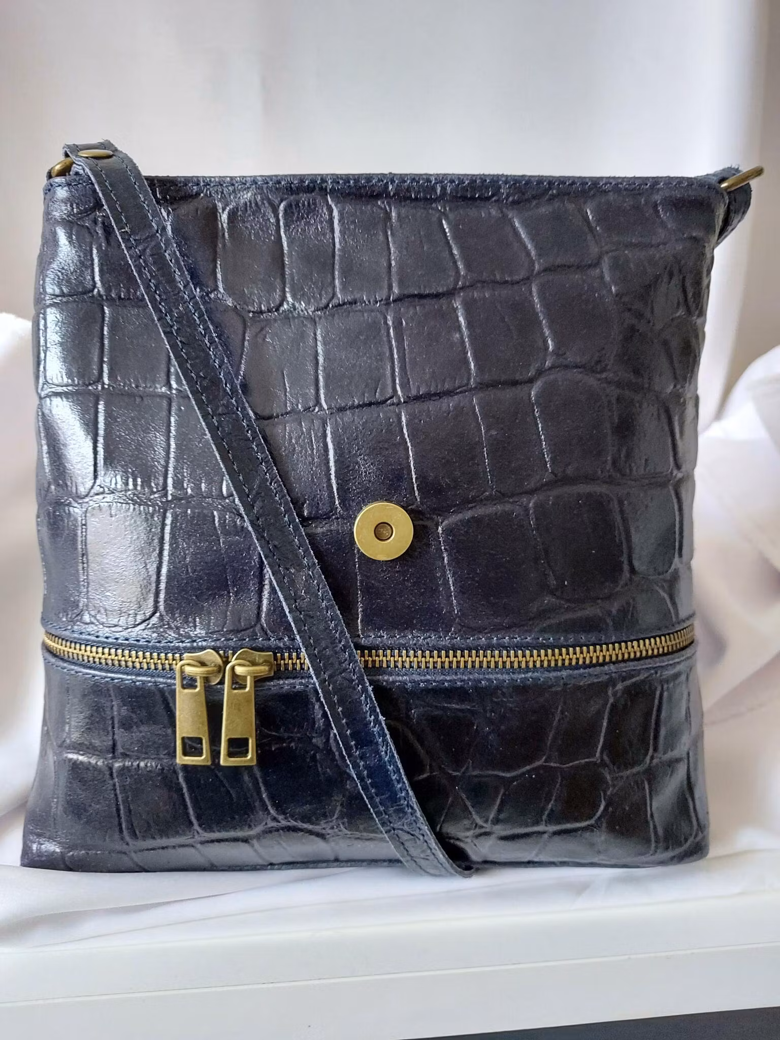Axelremsväska äkta skinn croco Mörkblå nr 69