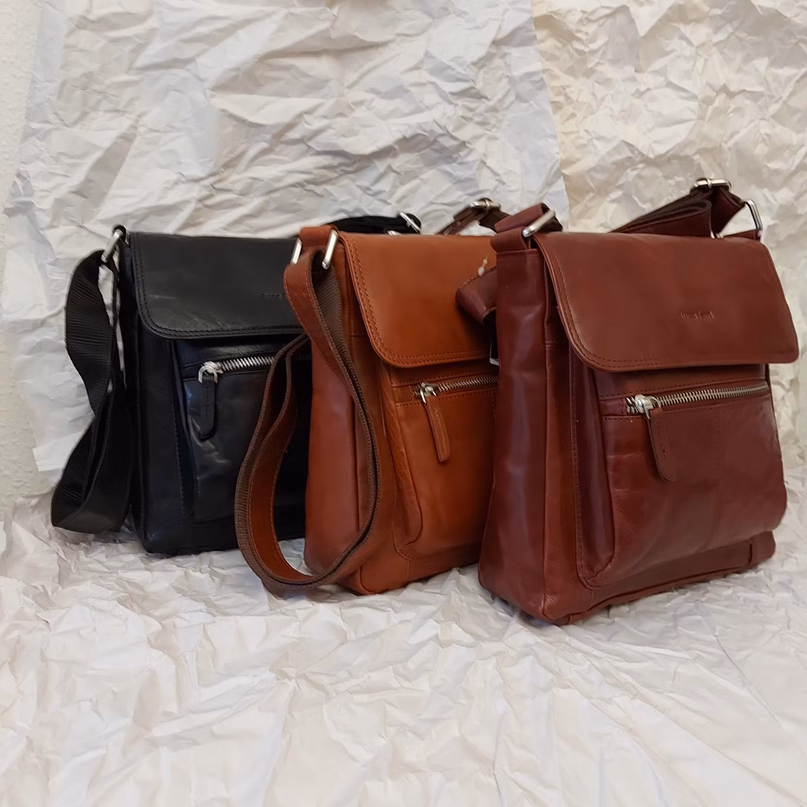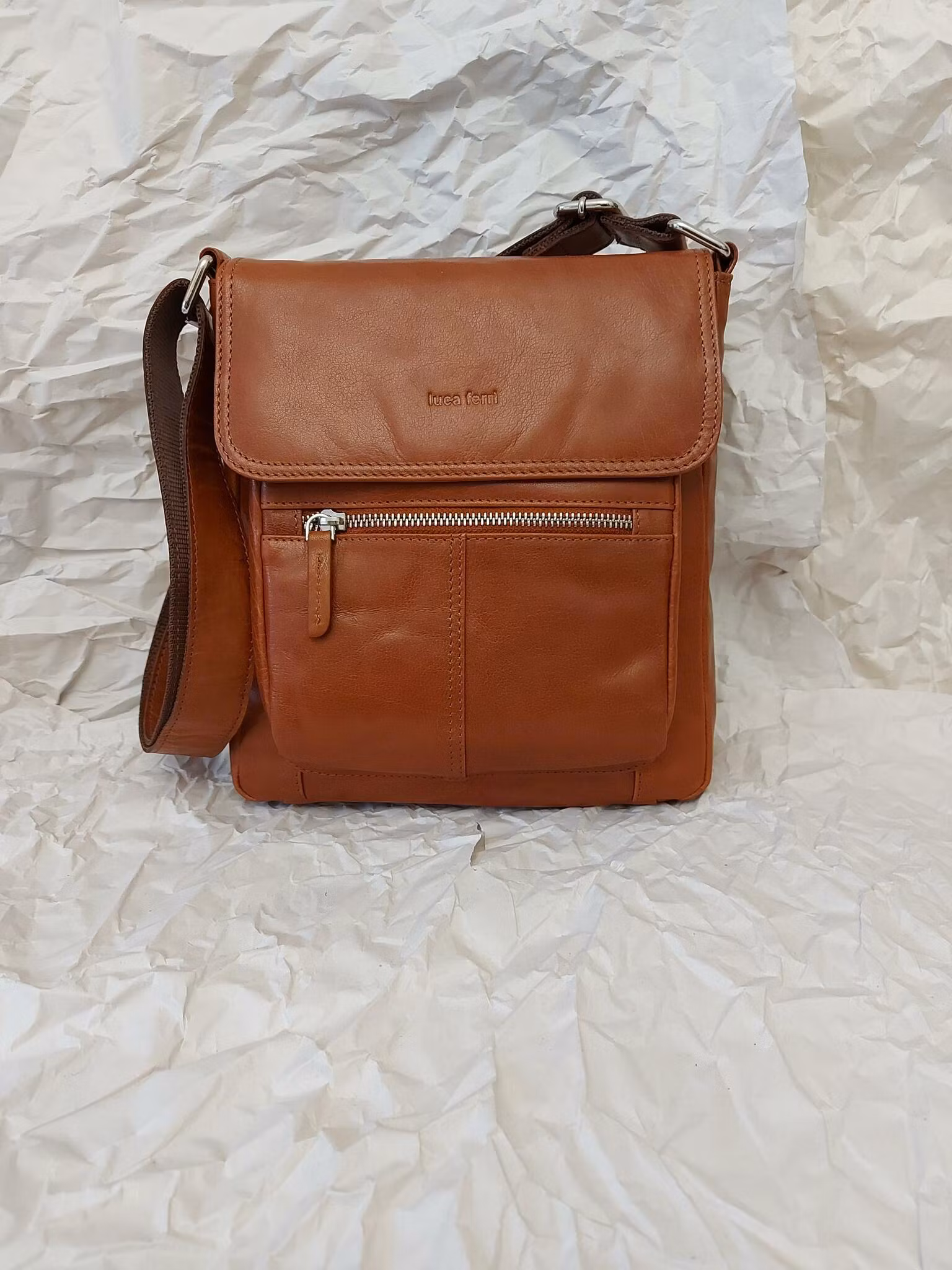Axelremsväska i äkta skinn från Luca Ferri 5-7433 cognac.