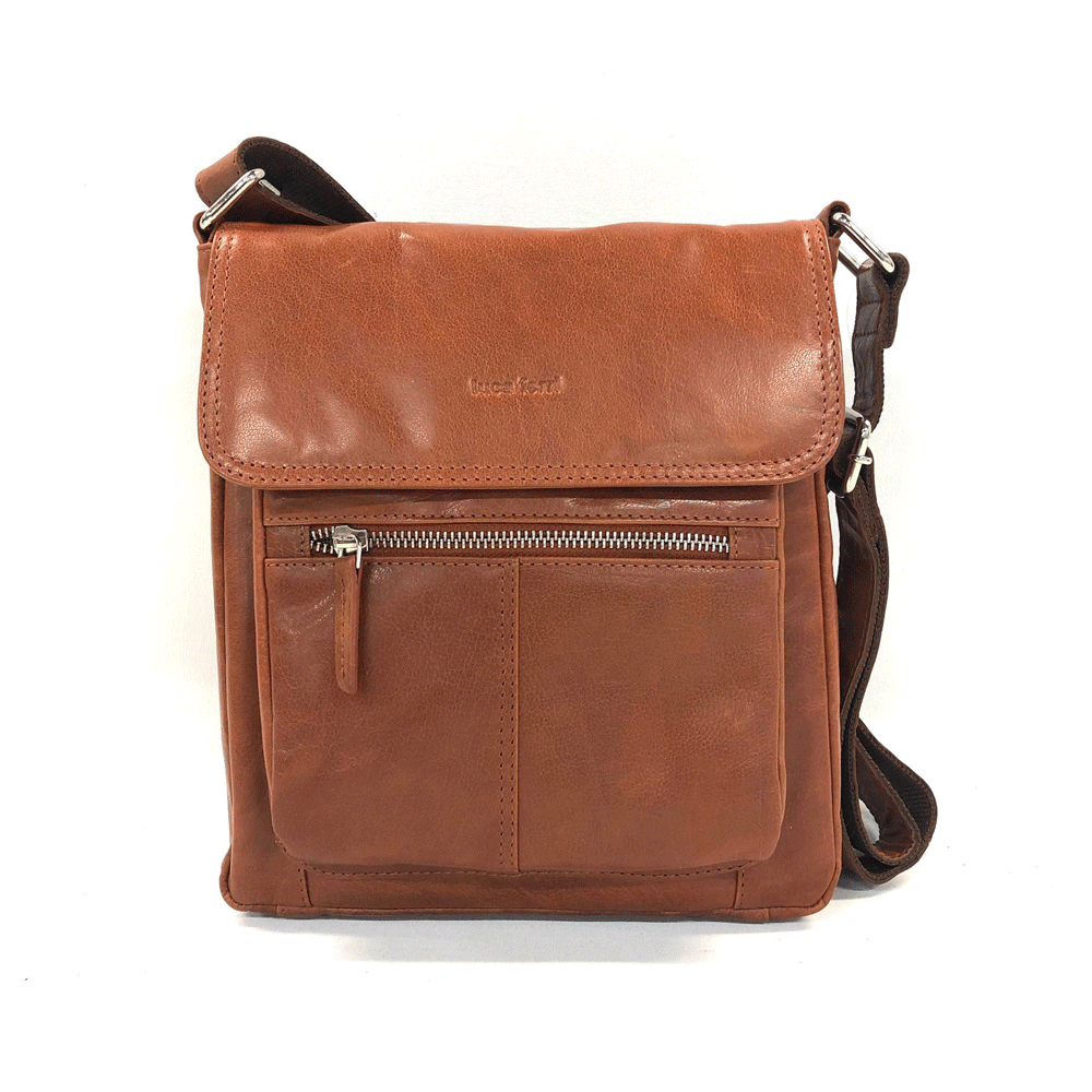 Axelremsväska med lock skinn cognac Luca Ferri 5-7433