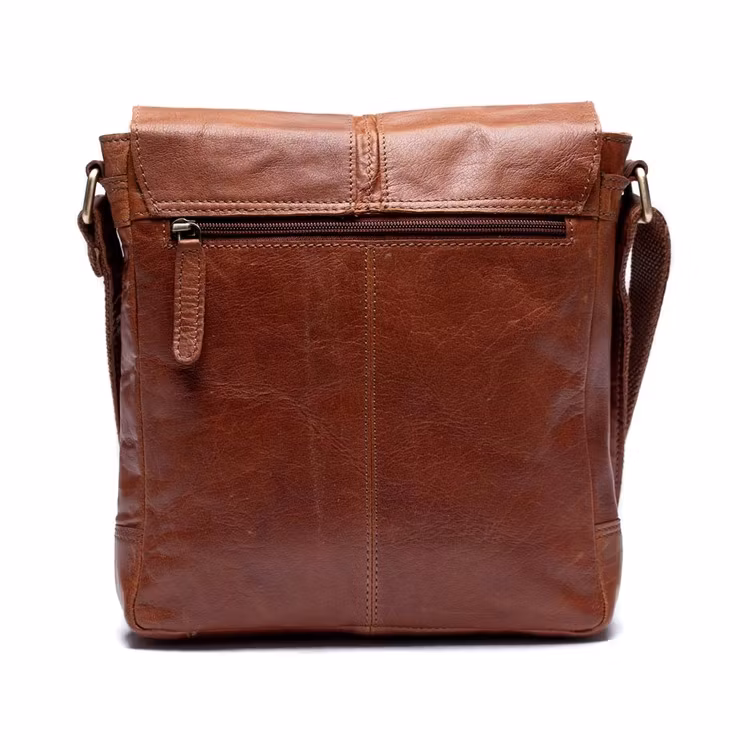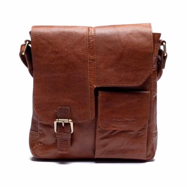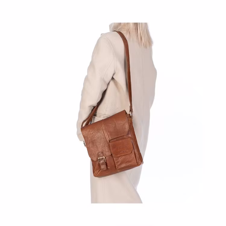 Cognac Skinnväska i crossover-modell, snabbficka för mobilen.