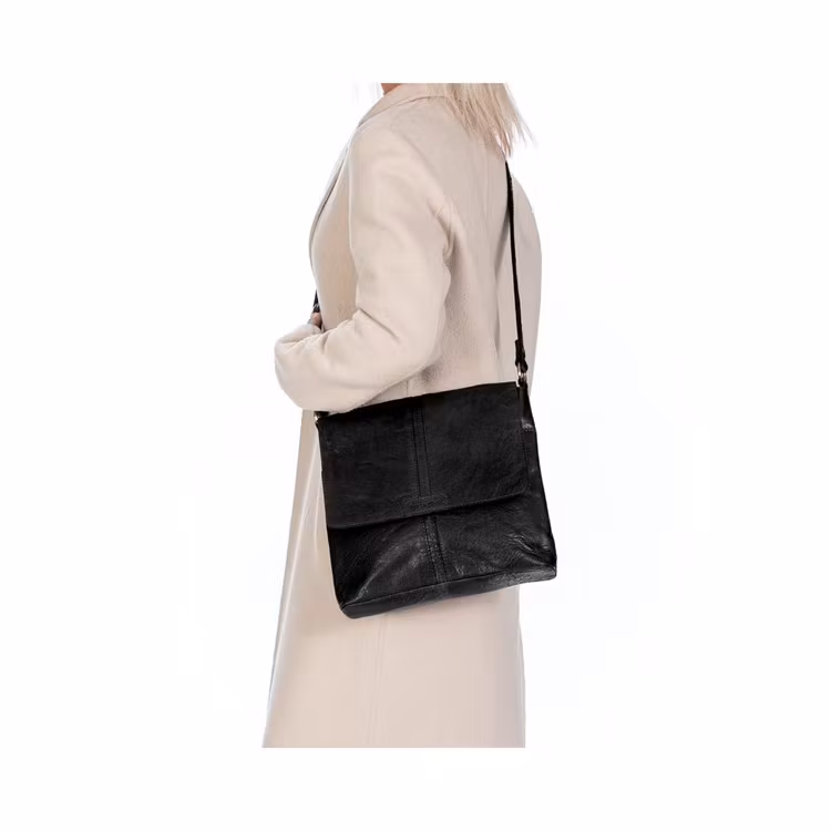 Väskan stängs med lock och magnetlås. Under locket finns även en dragkedja att stänga huvudfacket med.