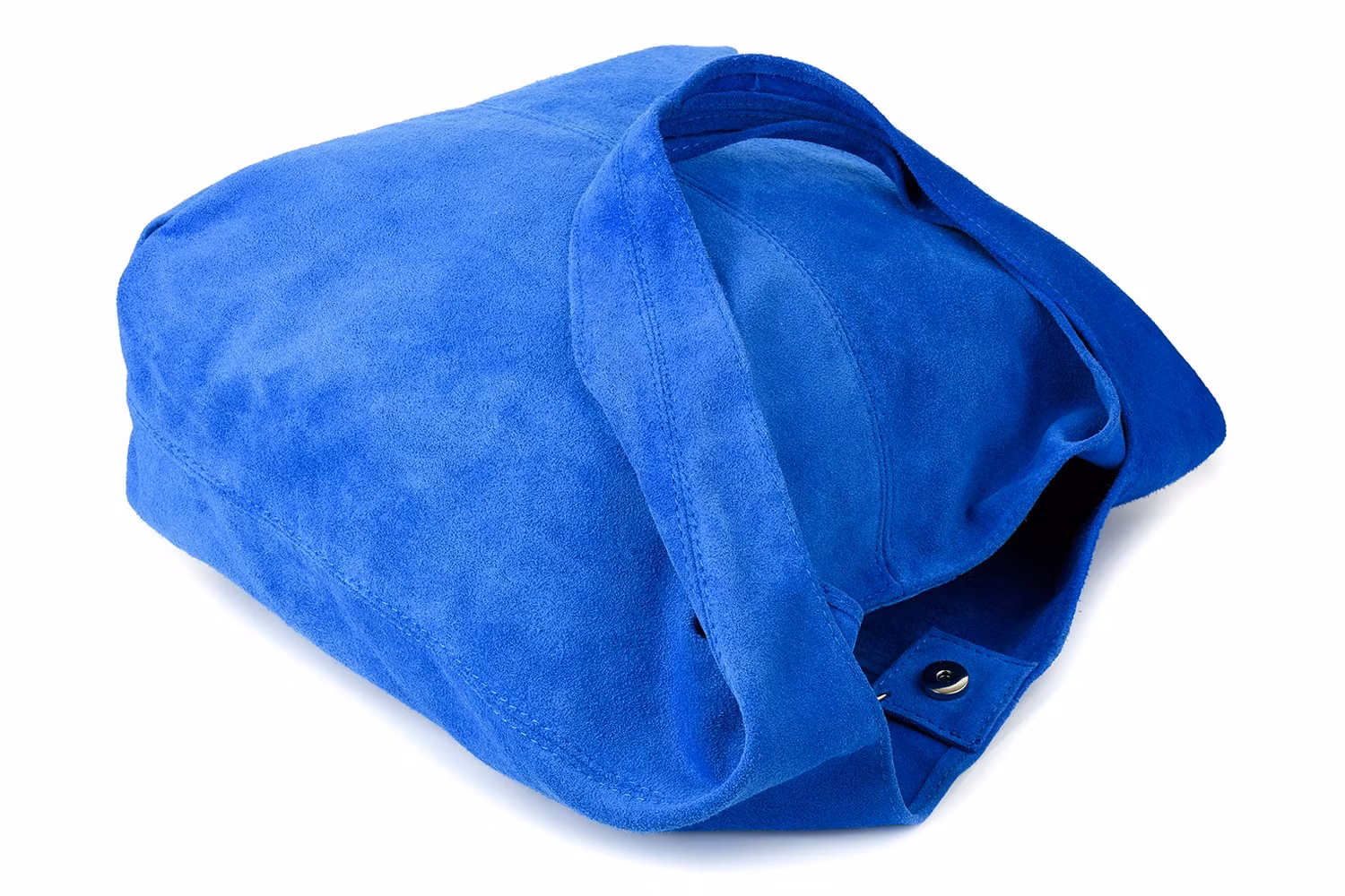 Skön väska i mjukaste mocka och en djup stålgrå färg.