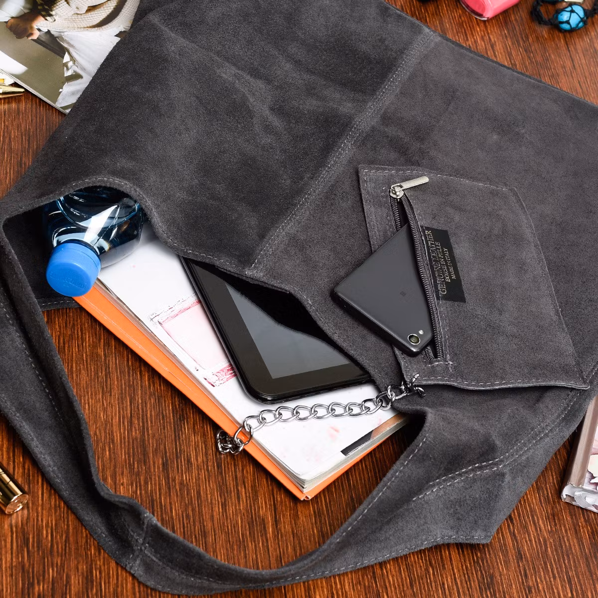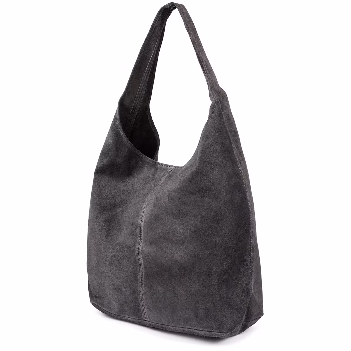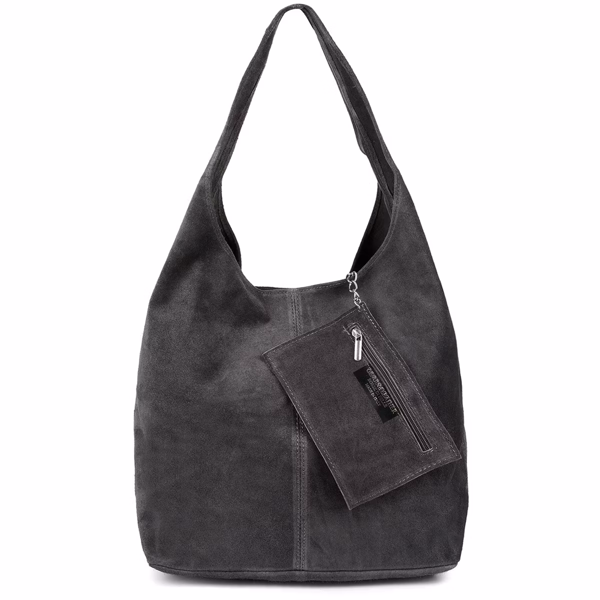 Kasse eller Axelväska i äkta mocka made in Italy N88 mörkgrå.